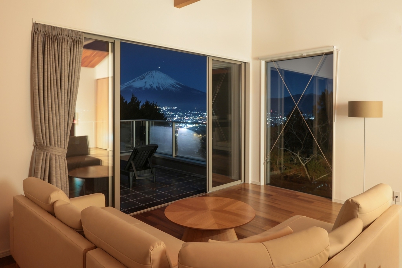 富士山と御殿場の夜景を一度に愉しむ贅沢を四季折々の風景を見られる貸切別荘。