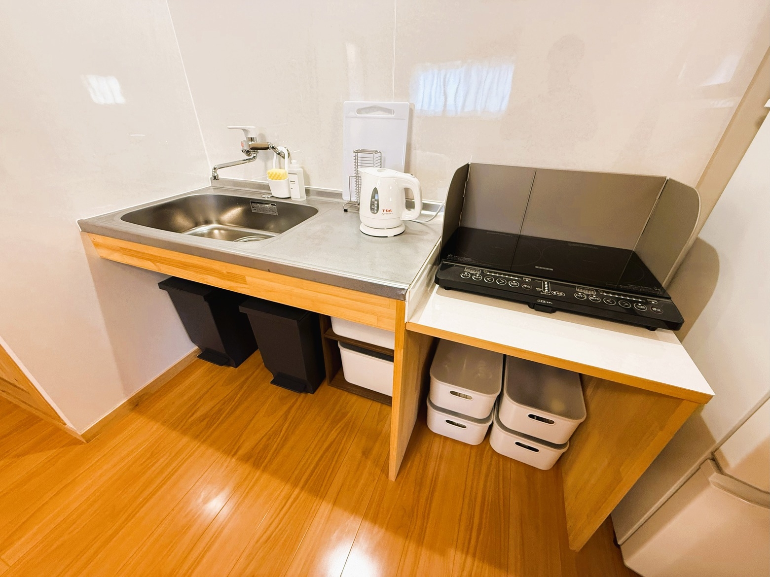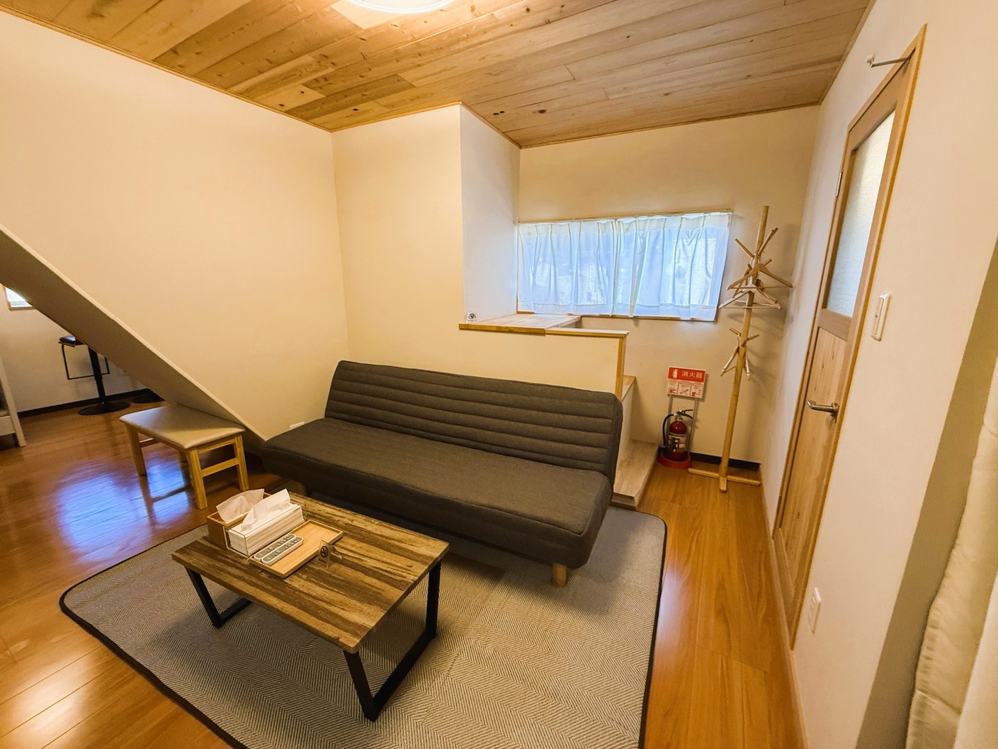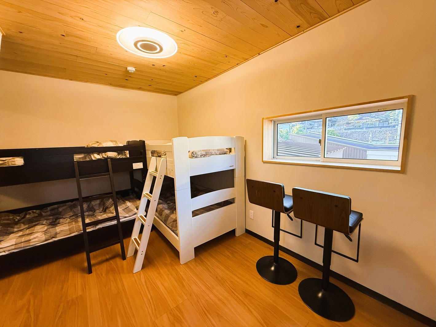 3階(やや狭めの階段利用)のお部屋。1フロア貸し(改装済)。素泊り。2段ベッド2台。大人4名まで宿泊可。12歳以下添寝(※予約は幼児で)で最大合計6名まで可