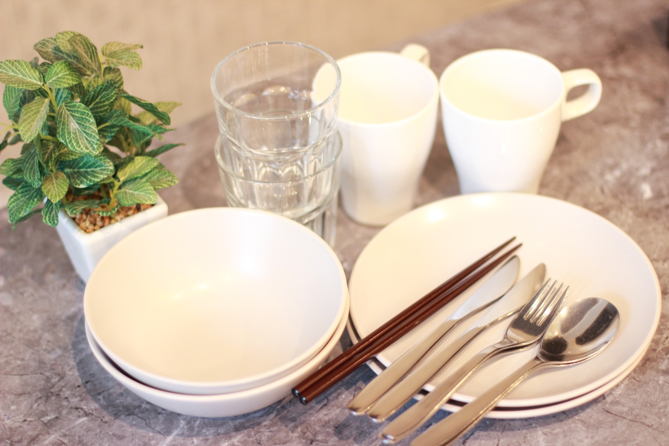 Wベッド1台 / Sベッド1台 / 浴槽付きバス / 洗濯機 / テレビ / ソファ / ローテーブル / キッチン / 冷蔵庫 / ケトル / 電子レンジ