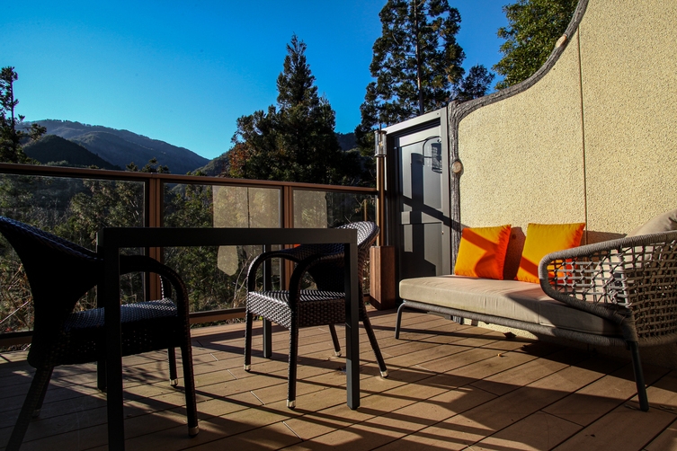 ホテル風の山素泊まり宿泊プランです。全部屋ウッドデッキ付き・無料Wi-Fiあり。マウンテンビューを楽しみながらくつろぎのあるひと時をお過ごしください。