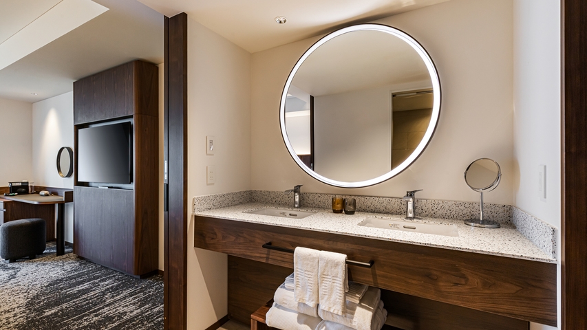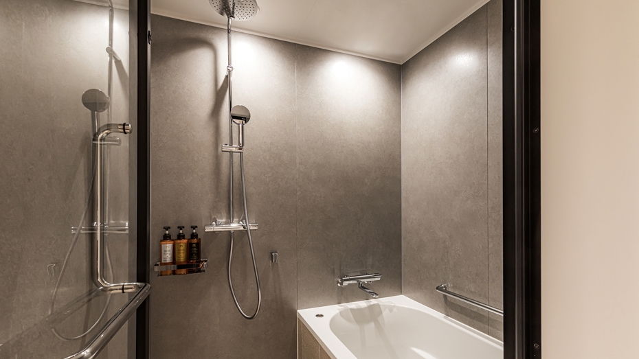 ベッドサイズW180cm×L203cm 1台/洗い場付バスルーム/本客室タイプは隣接建物に面しており、客室内からの眺望はございません