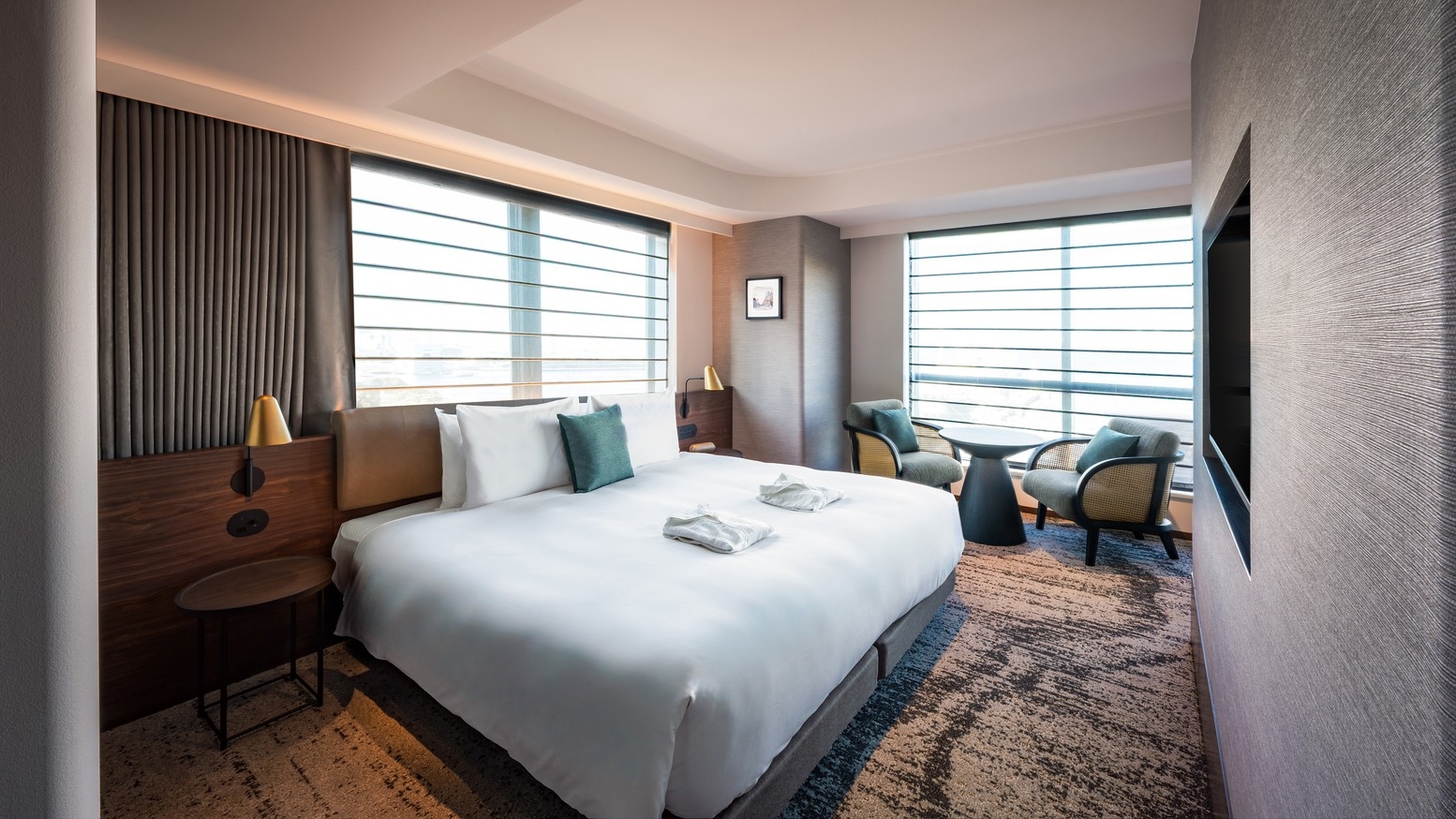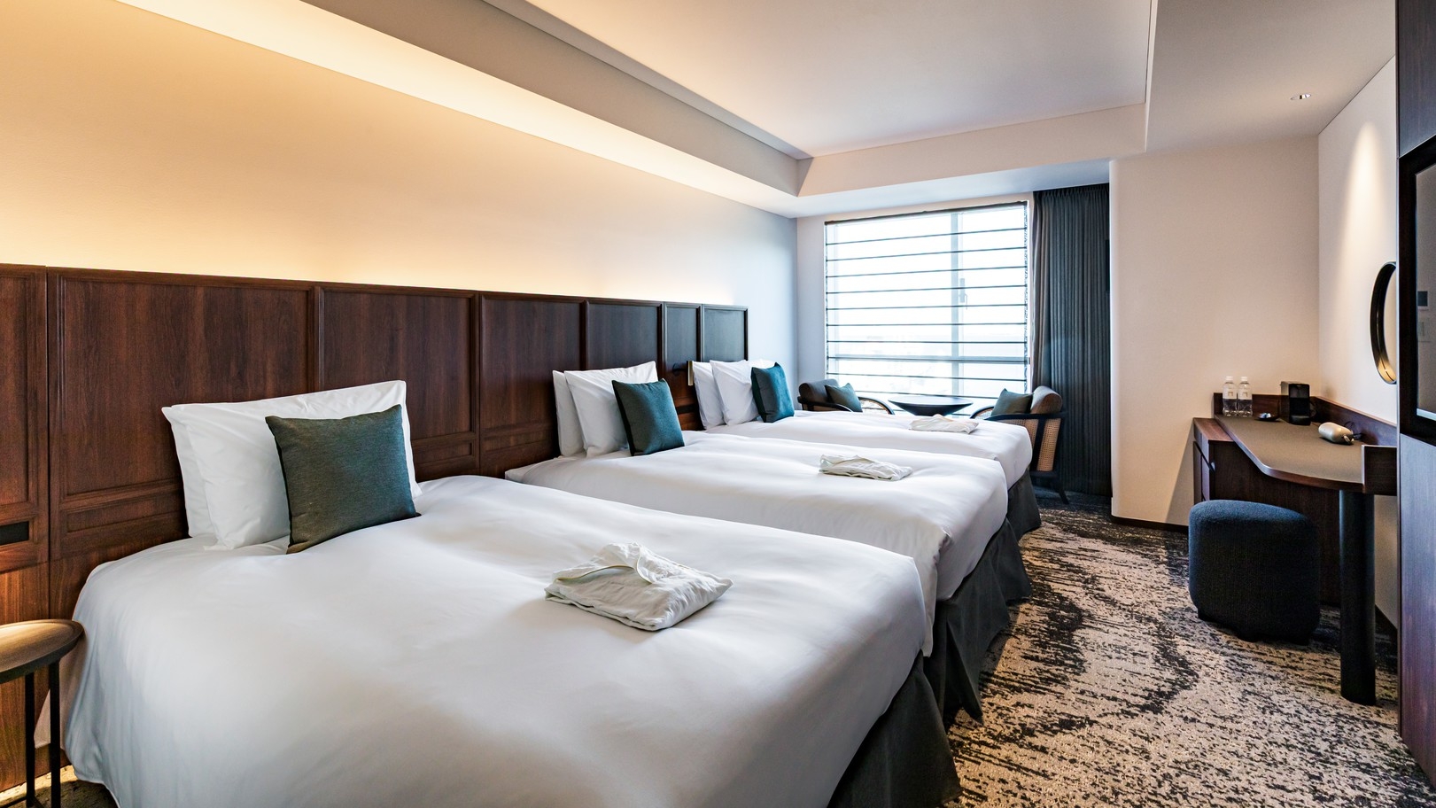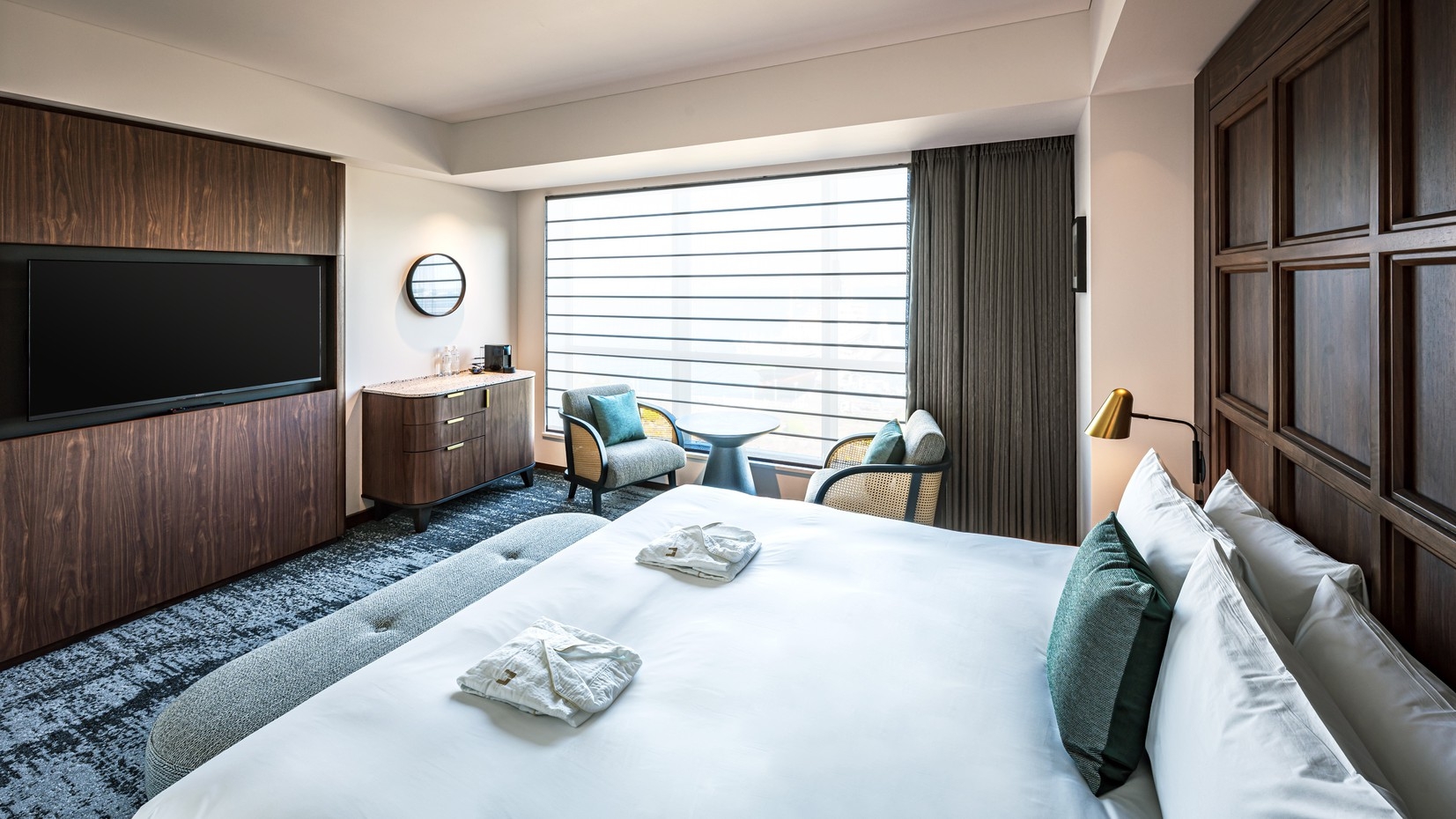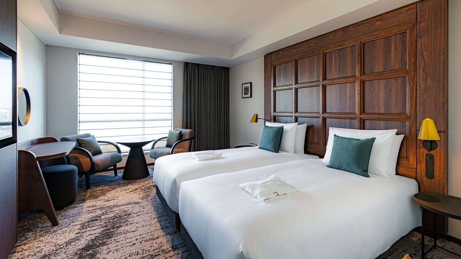 客室は「Classy」「Luxe」「THE GATE(最上階スイート)」の3タイプからセレクト。いずれも大きな窓と上質なインテリアで、レトロとモダンが調和する横浜らしい滞在を演出します。