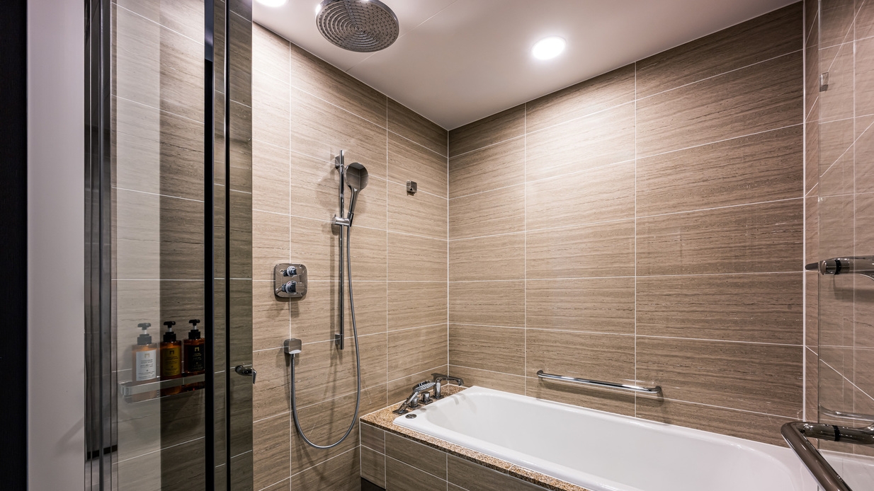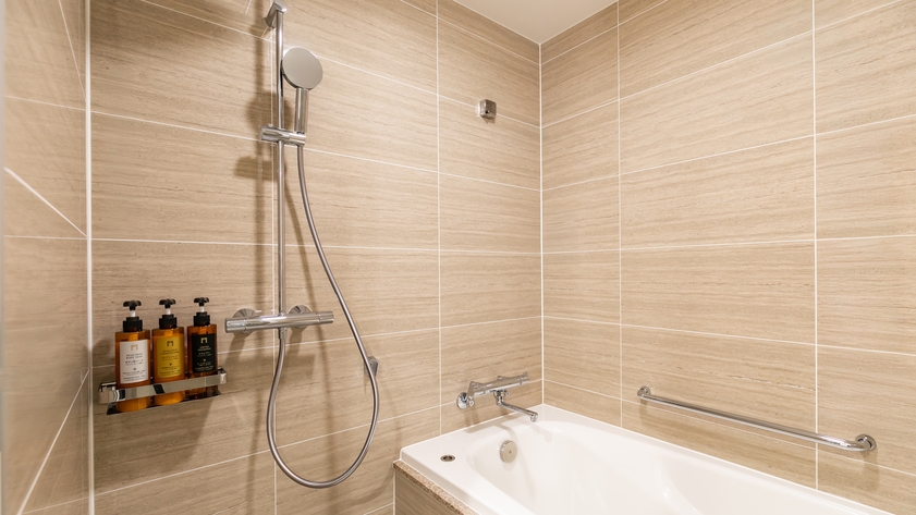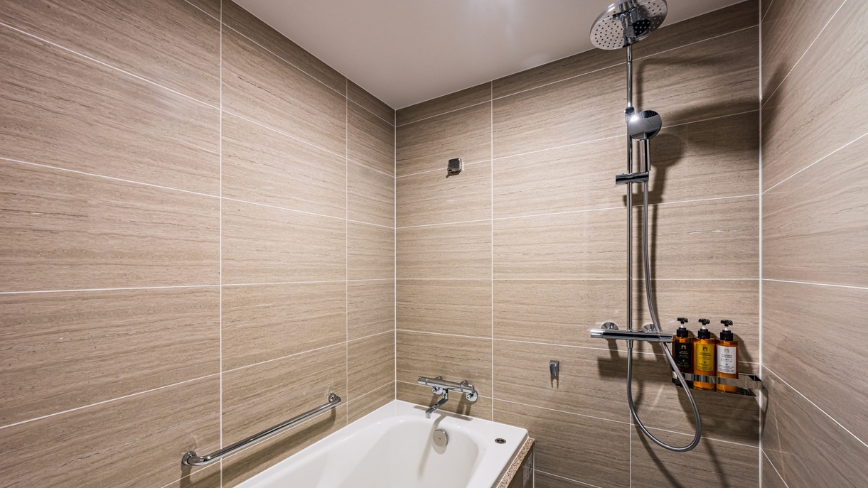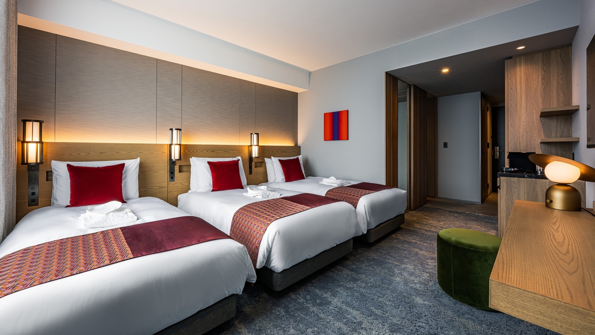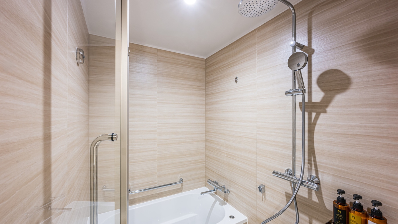 ベッドサイズW100cm×L203cm 2台+エキストラベッド1台(シモンズ社製)/洗い場付バスルーム(レインダンスシャワー完備/ハンスグローエ社製)