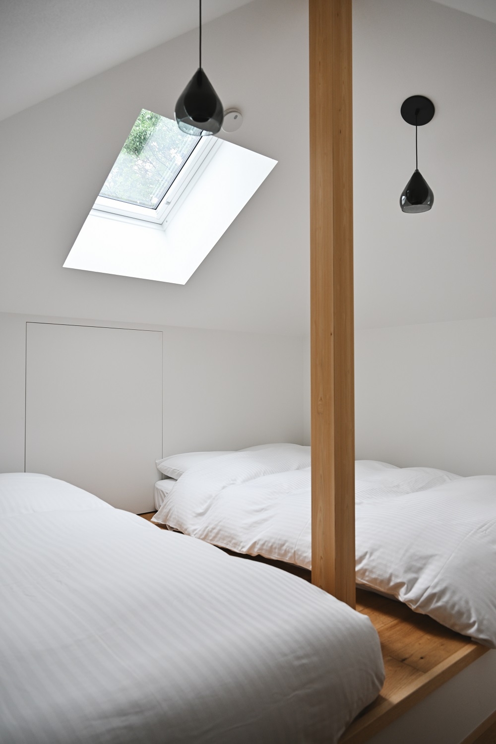 【ペット不可】寝室(ダブル2台)屋根裏部屋(セミダブル2台)その他シングル敷布団2組・リビング・キッチン・ダイニング・バストイレ