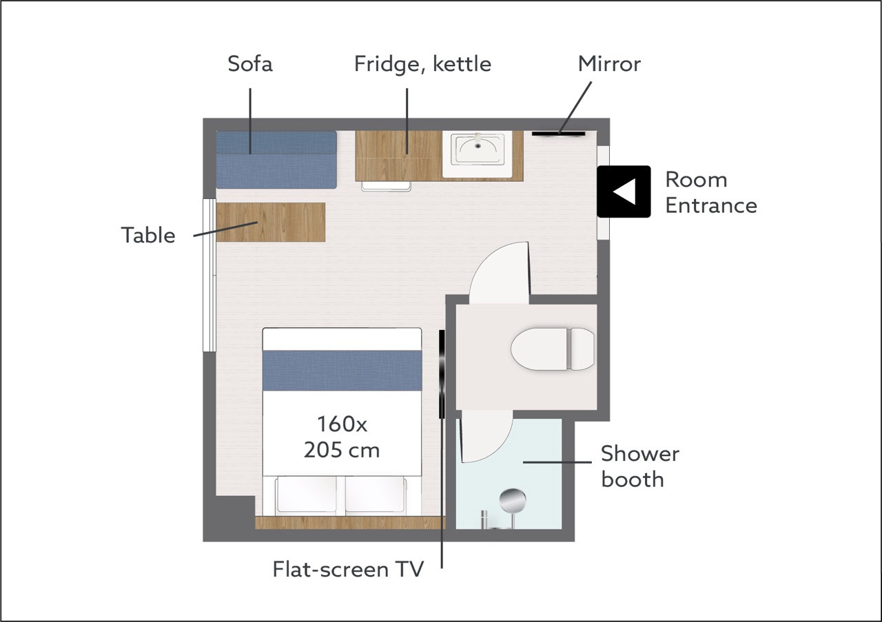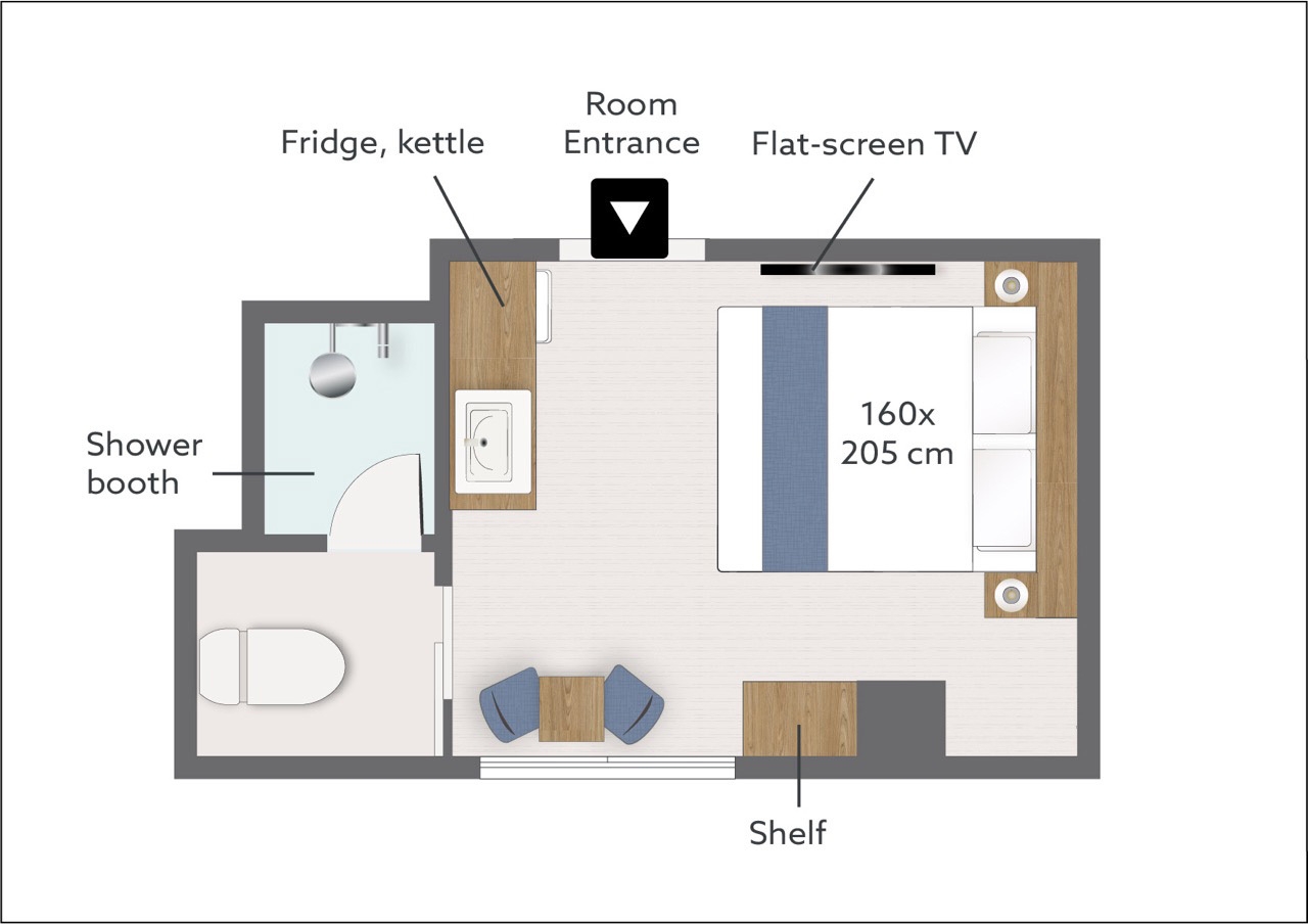 2名様までご利用可能なクイーンサイズベッドのお部屋。魅力あふれる街を散策した後は、ここでゆっくりとおくつろぎください。
