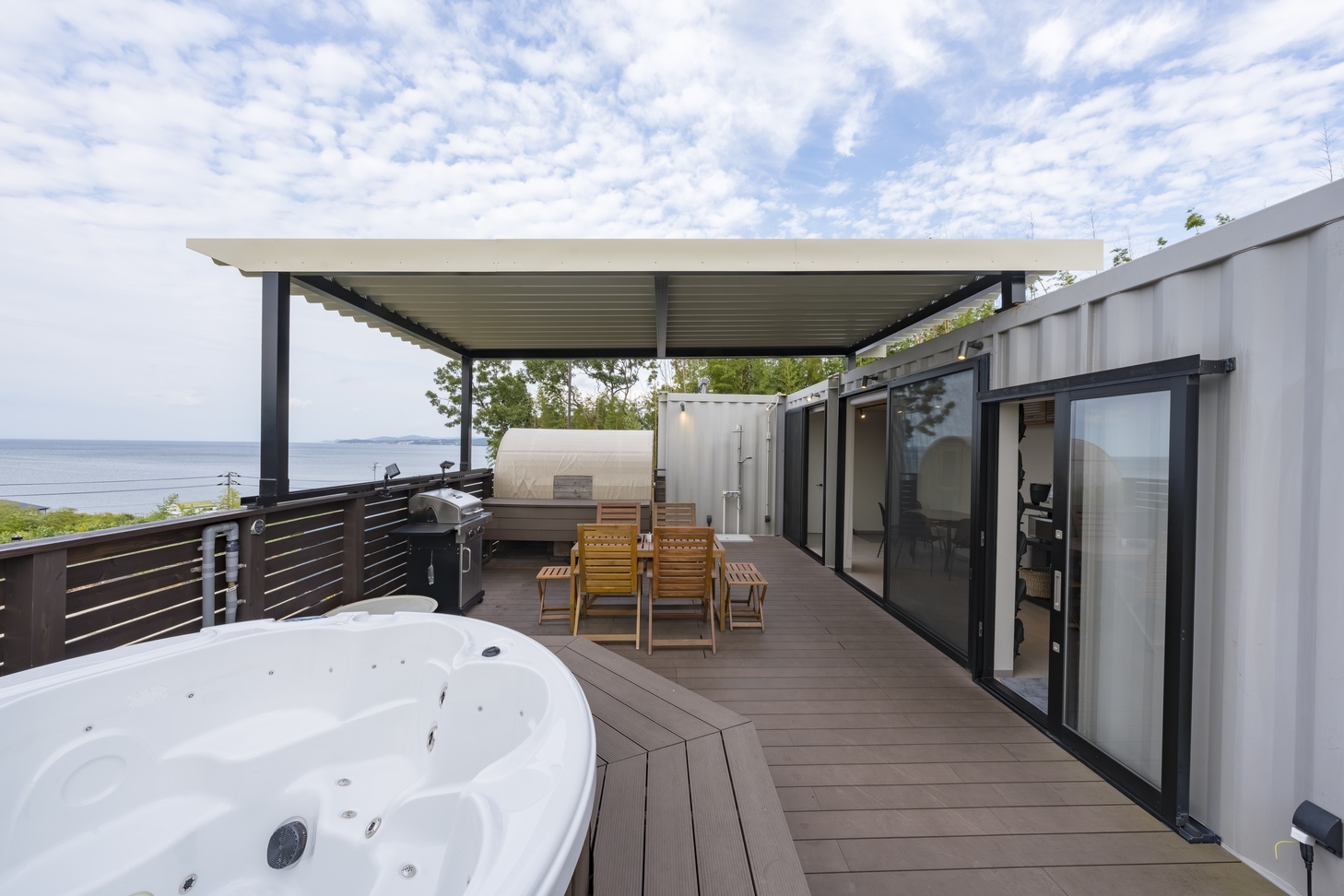 中温で長時間サウナ内での会話も楽しめる薪サウナ|5名まで入れる専用大型ジャグジー|ガスグリルで自由にBBQ|雨天、日除けのパラソル|3つのベッドルーム