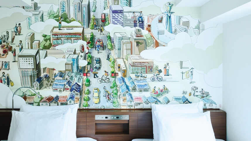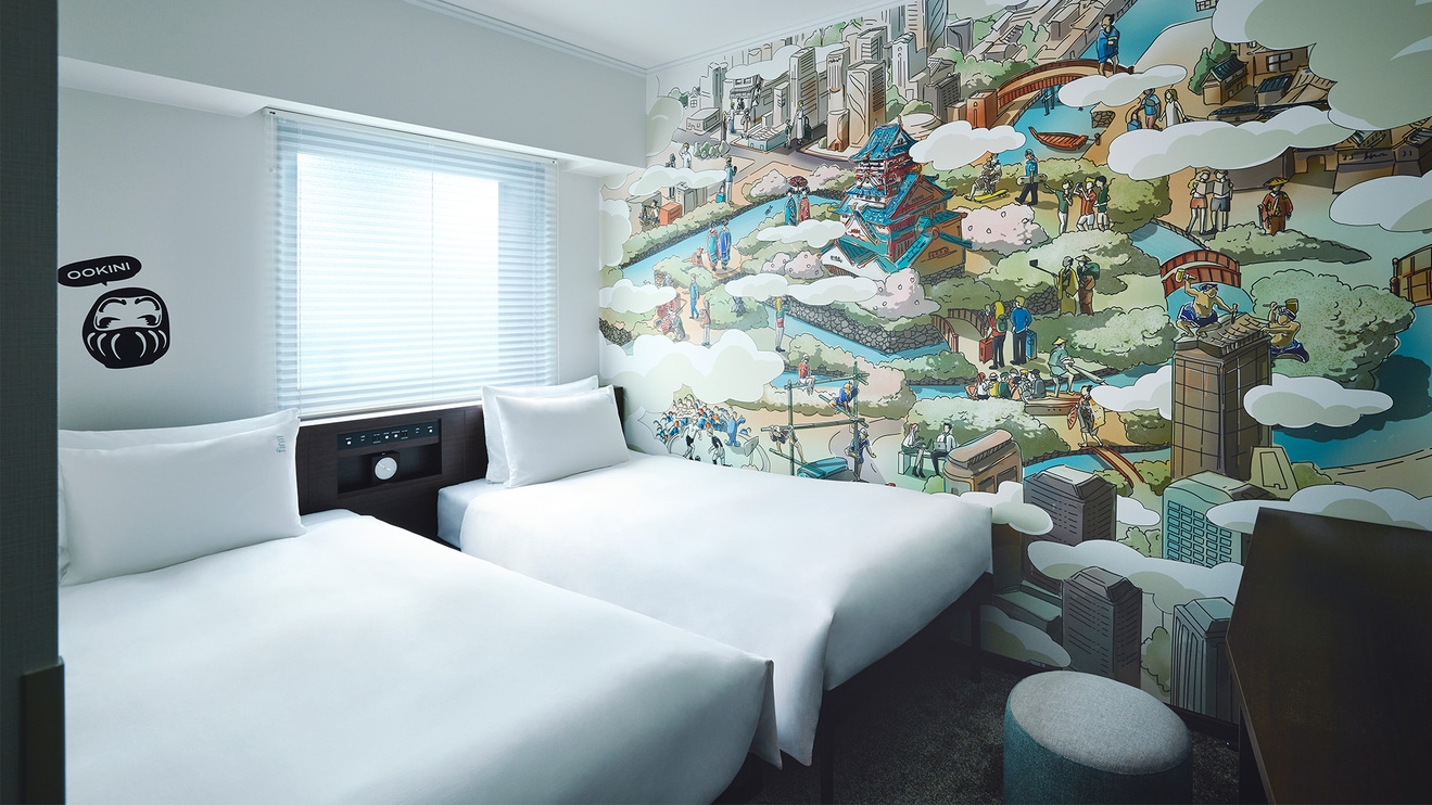 10階以上に位置する15平米の客室【バス シャワーコンビネーション ミニ冷蔵庫 100cmのツインベット】