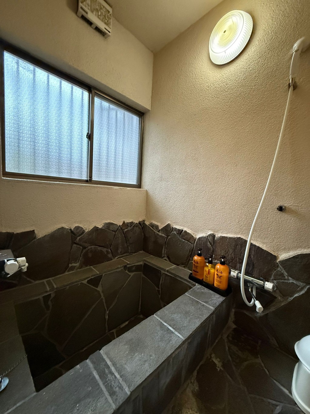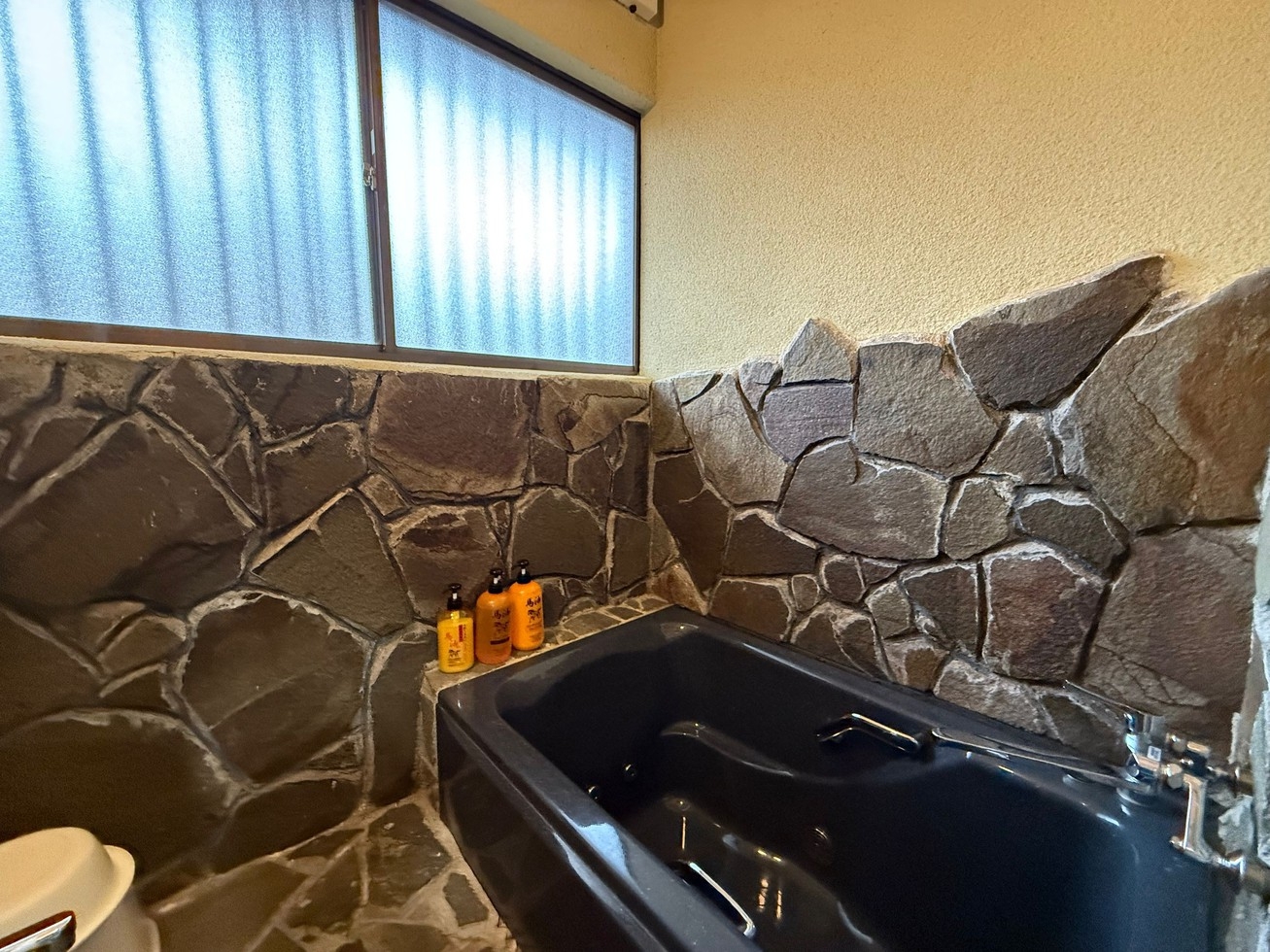 多くの客室に備えられた石造りの温泉風呂。