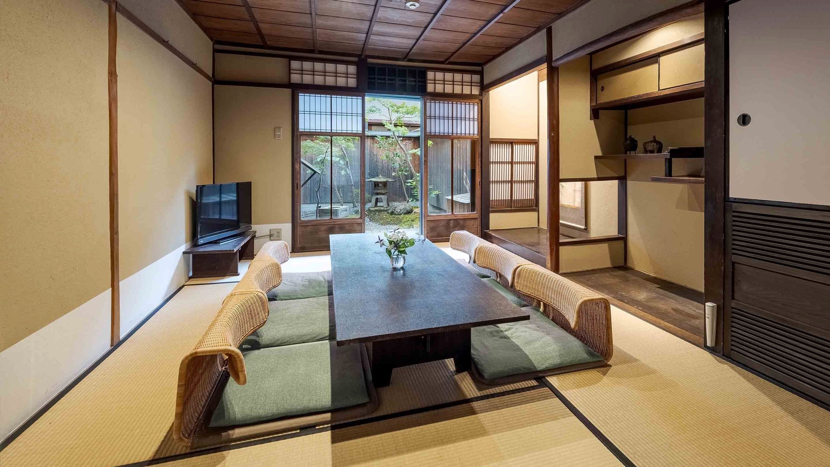 2階建て。布団5組。ダイニング・キッチン・トイレ・洗濯機・洗面・浴室・坪庭。