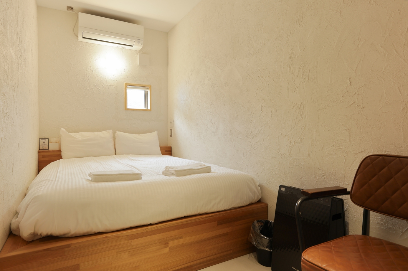 サウナ・シャワー・トイレ共用の、ダブルベッド(ベッド幅140cm)のお部屋です。