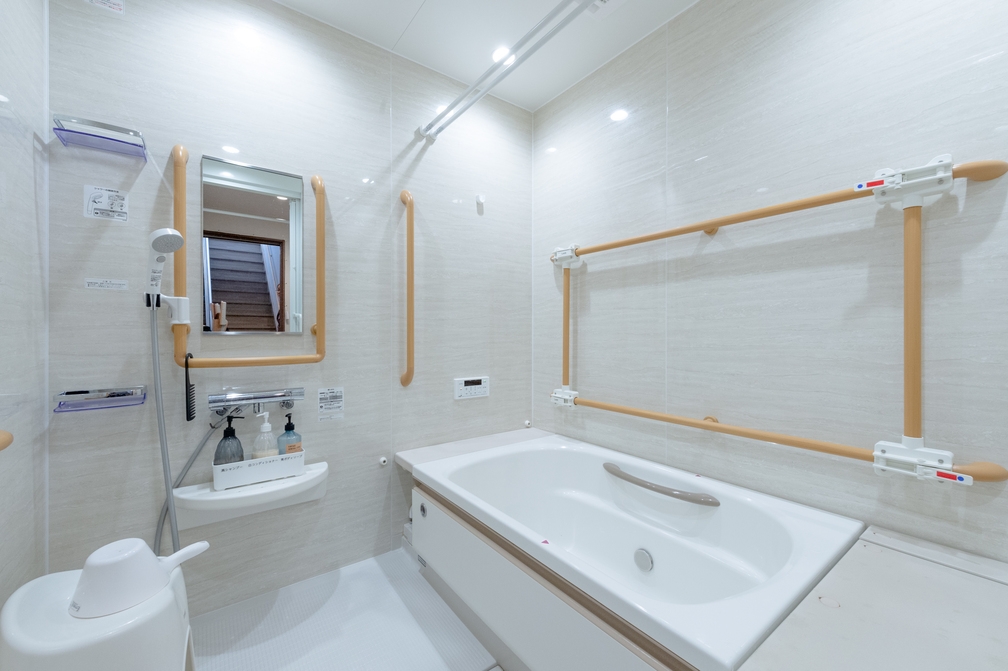 (車イスの方も浴槽に浸かっていただけます(※要介助者))