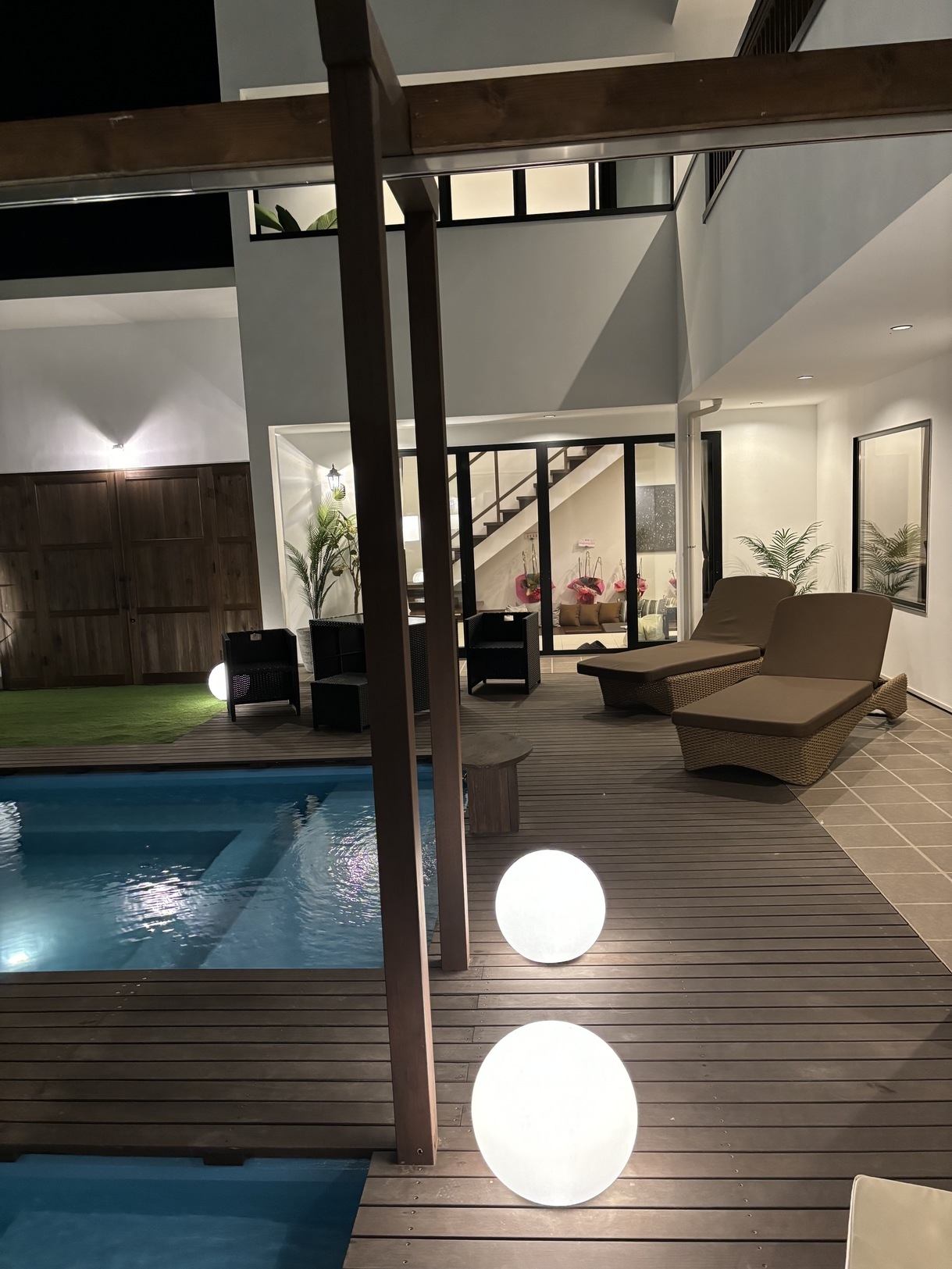 ファミリー、仲良しグループ向けリゾート感いっぱいの施設を丸ごと借りる。6つのお部屋すべてにバス・トイレ付きその他プール・サウナ・プロジェクターでお楽しみ下さい。