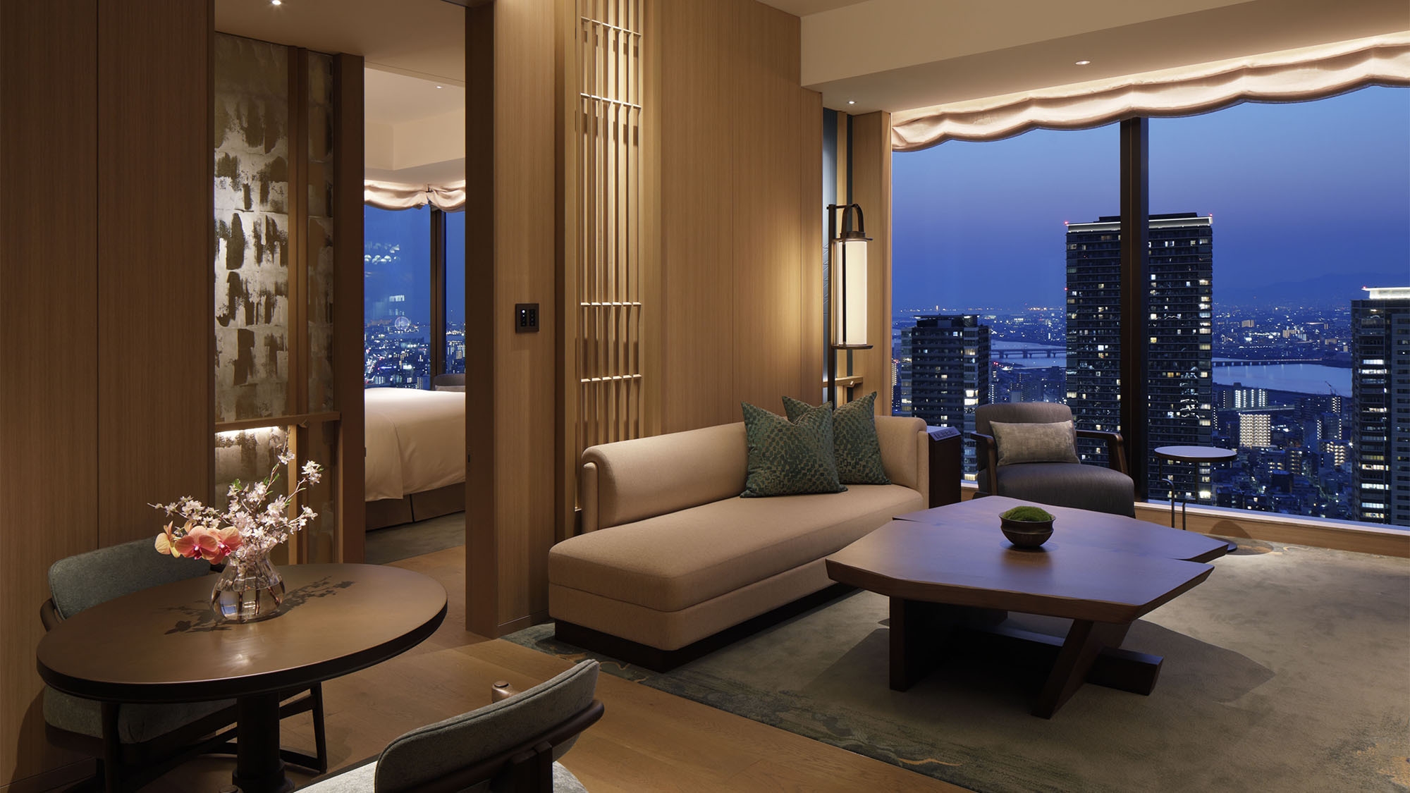 ウォルドーフ・アストリア大阪は、JR大阪駅に隣接するグラングリーン大阪南館パークタワーの上層階に位置し、客室やレストランから大阪の街を一望できます。