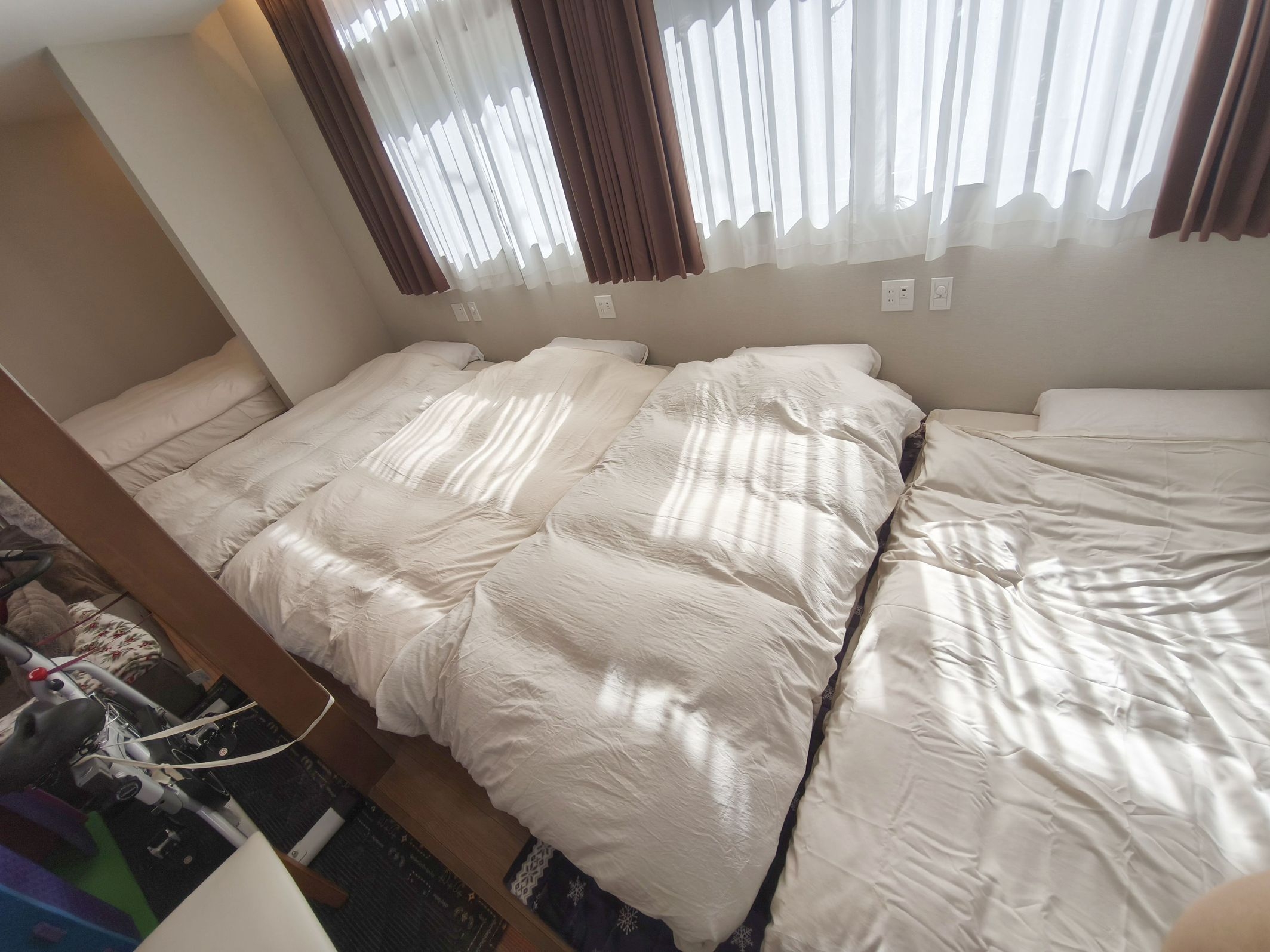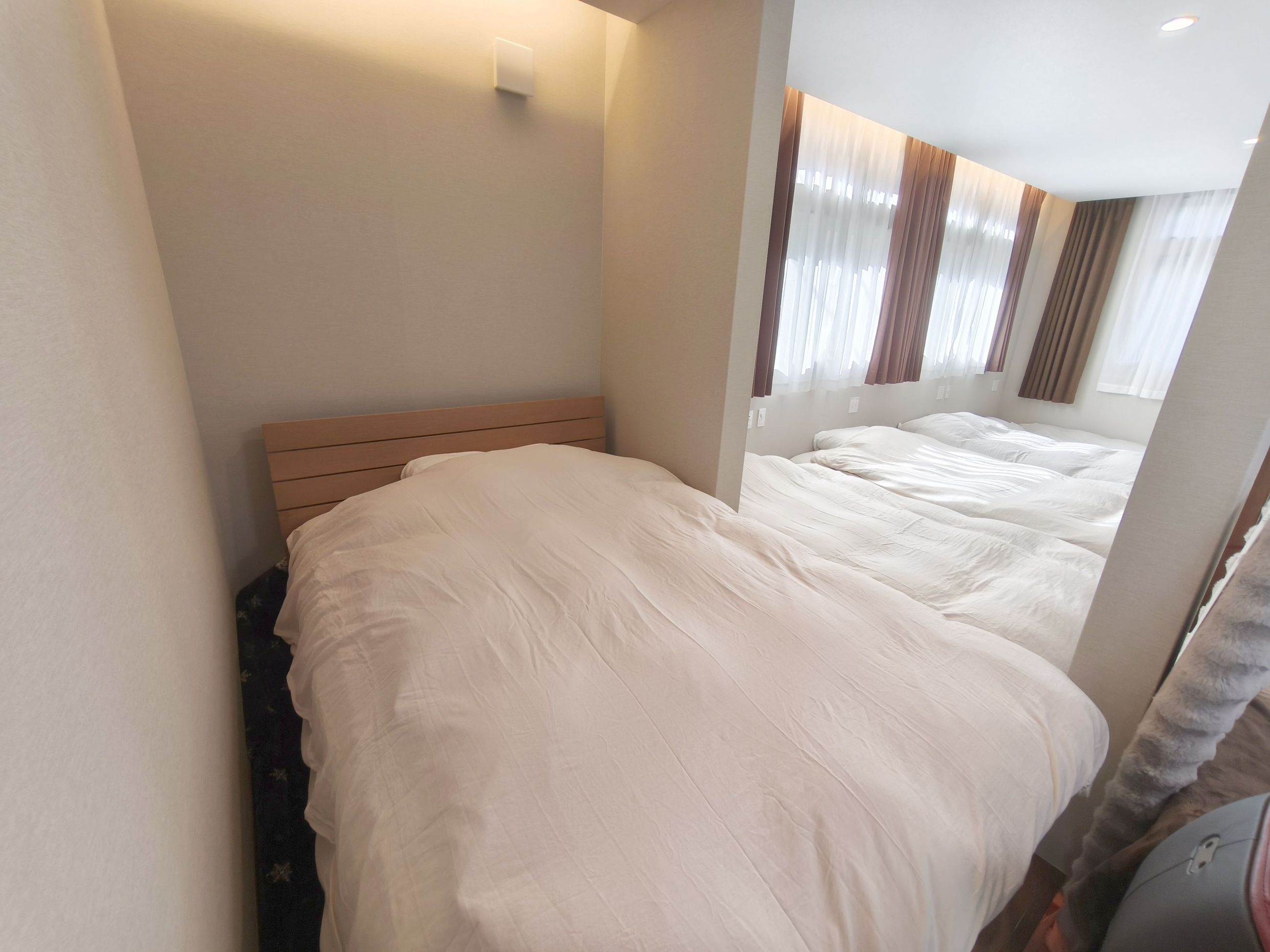 ・寝具はダブルサイズ寝具4+シングルサイズ寝具1です。そのため6名様以上はダブルサイズ寝具に2名使用となります。