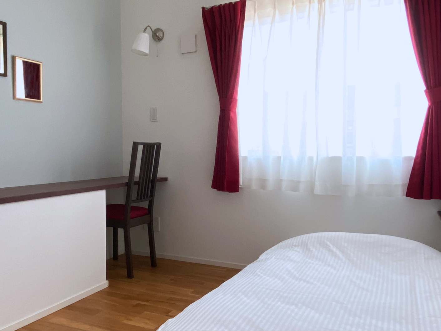 朝食付きのシングルルームです。トイレとシャワー室、洗面台は共用です。