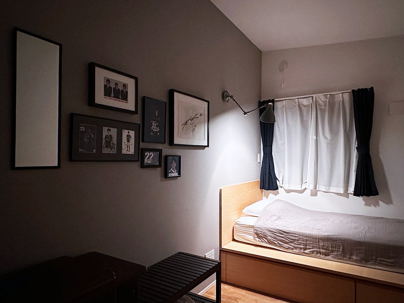 二段ベッドとロフトのある天井の高いお部屋です。トイレとシャワー室、洗面台は共用です。朝食付き。4名様の場合、スペアベッドがご利用いただけます。