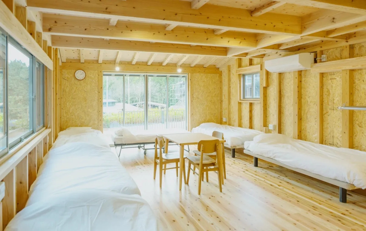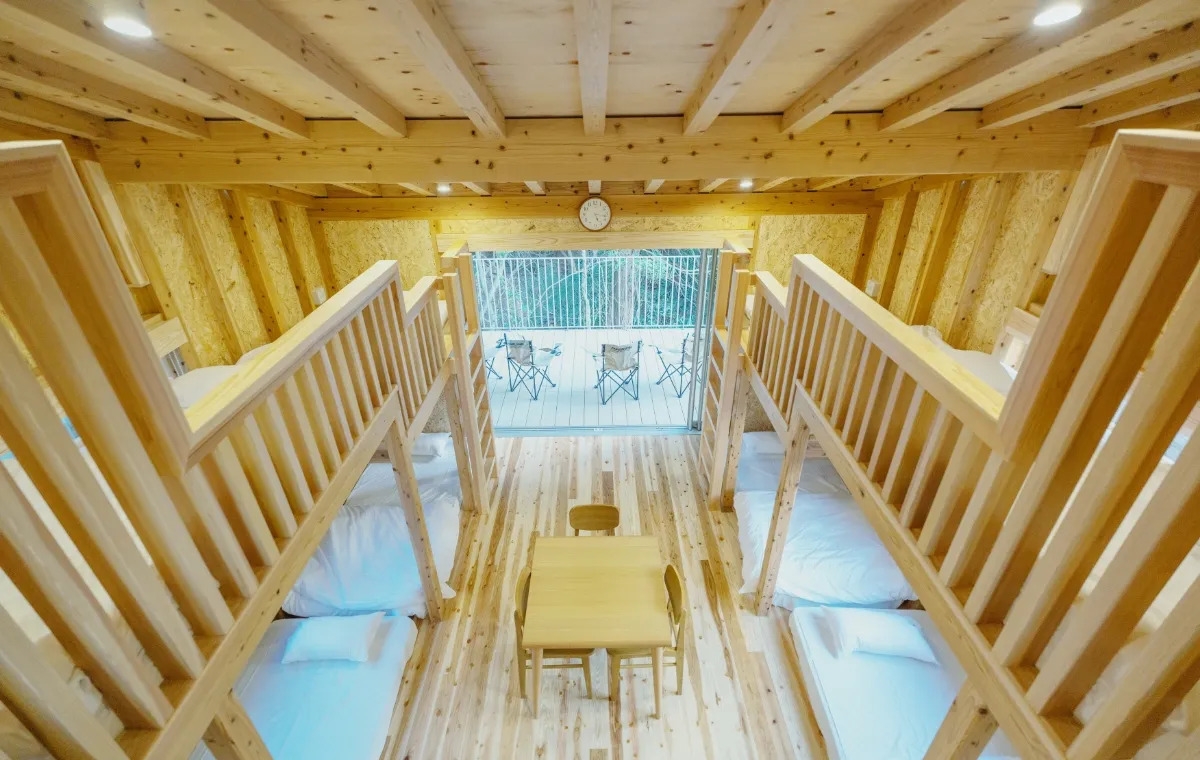 ベッド8台(下ベッド3、上ベッド5)・シャワー・トイレ・洗面台