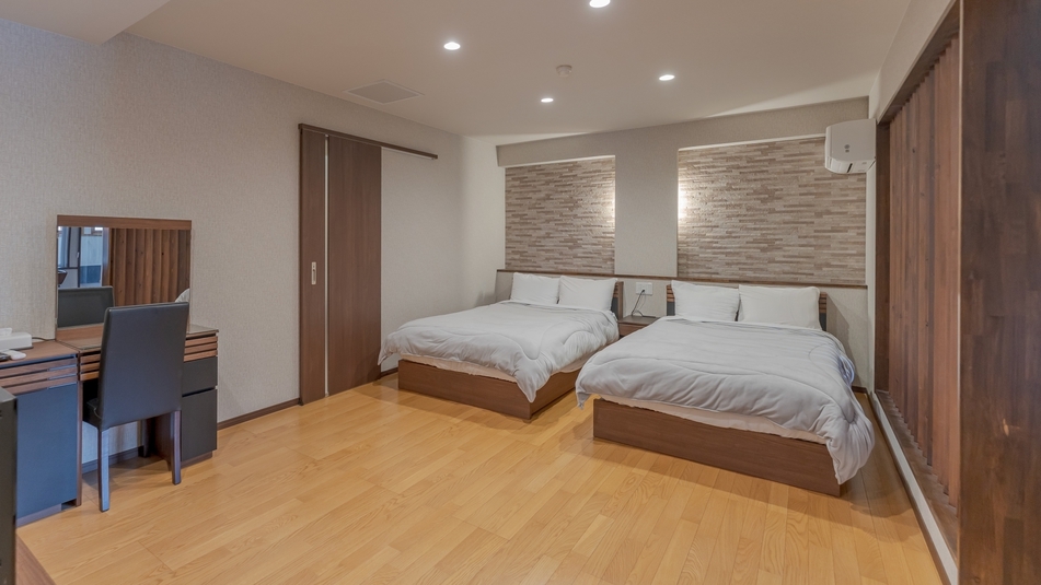 2022年完成のスイート客室■ソファセット付リビング■こだわりマットレスのツインベッド■シャワーブース有