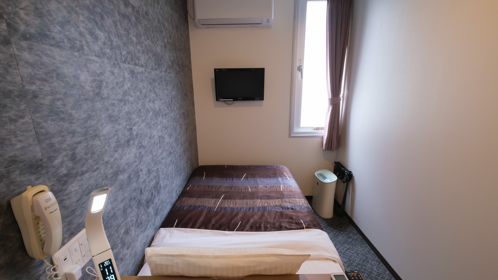 【リニューアル客室】10平米の機能的シングル。客室に浴室はありませんが天然温泉大浴場をご利用。頂けます。温水洗浄便座・空気清浄機・高速Wi-Fi完備※添い寝不可