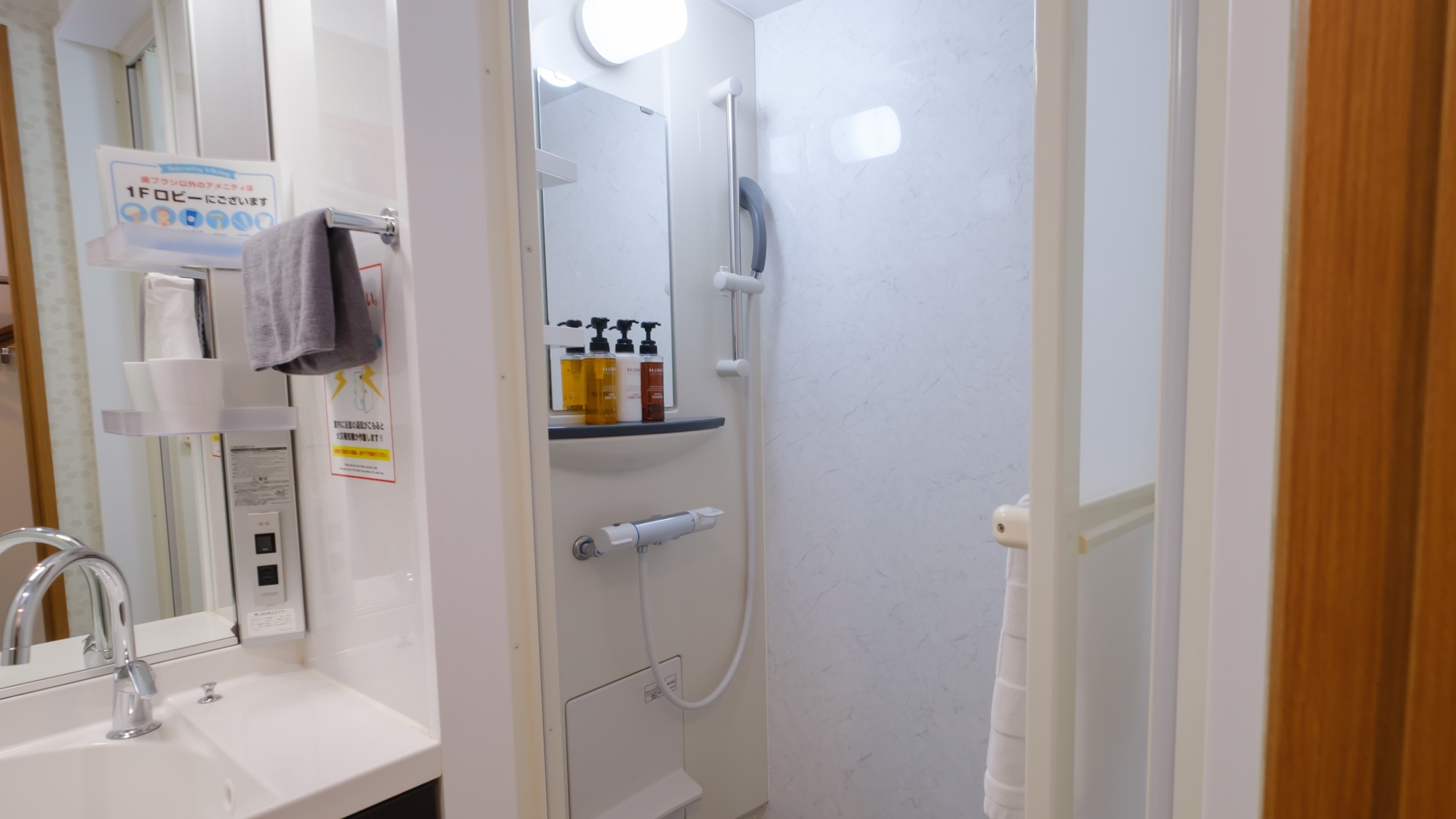 【リニューアル客室】バスタブなしのシャワーブース付。セミダブルベッドで快適に。温水洗浄便座・空気清浄機・高速Wi-Fi完備。清潔感ある新空間※添い寝不可