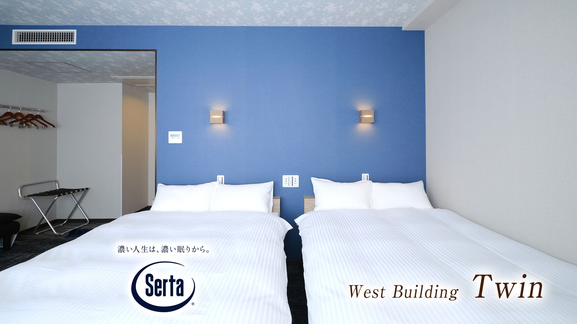 リニューアルした清潔快適な空間でご滞在!サータベッド2台完備※3名の場合はエキストラベッド追加、4名以上の場合はセミダブルベッド1台に対し2名ずつご利用頂きます