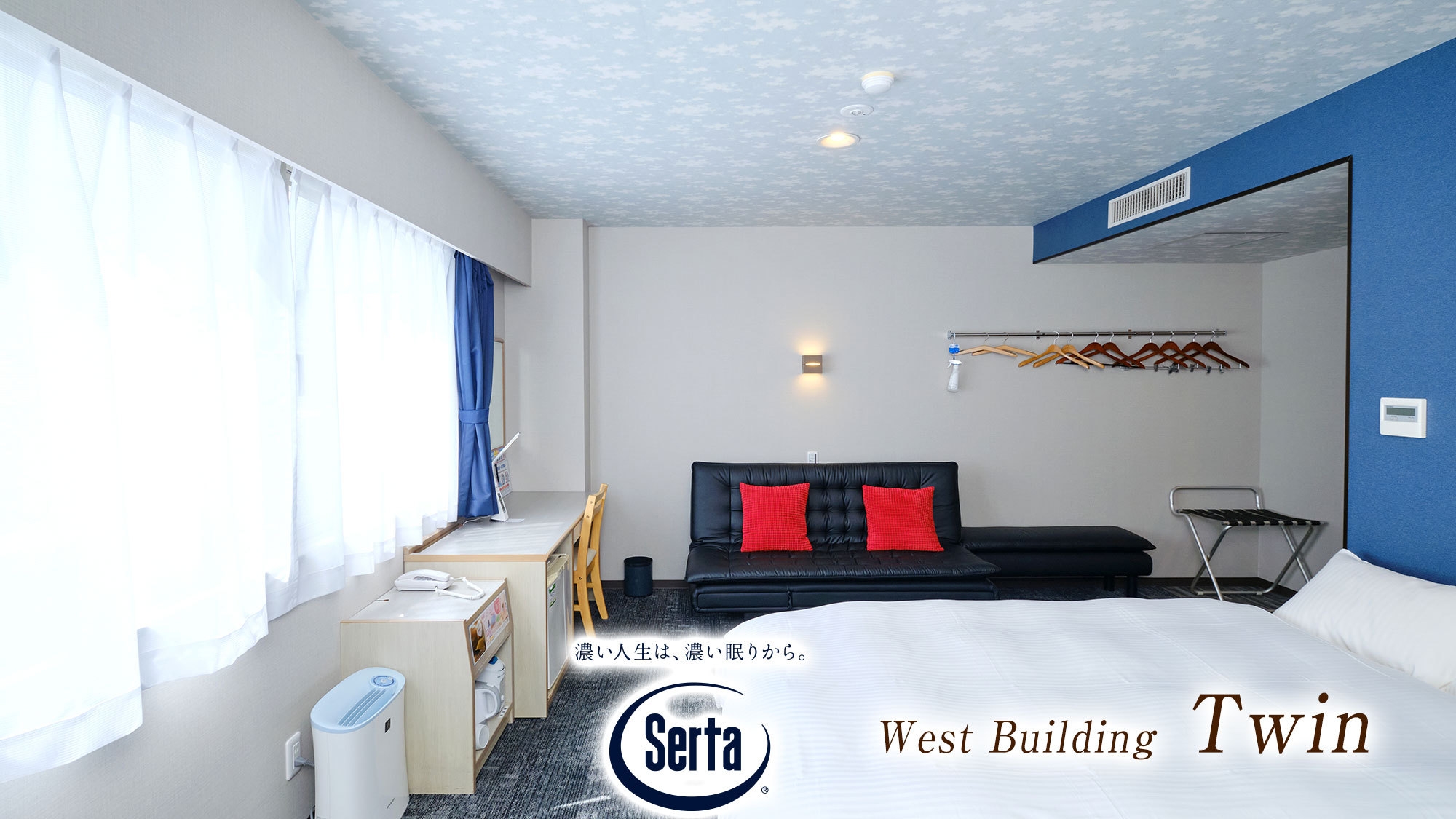リニューアル西館/機能性抜群の客室☆サータセミダブルベッドで深い眠り!上下セパレート!ニットパジャマ^^デュベスタイル布団と広々とした客室で清潔感溢れる寛ぎ☆