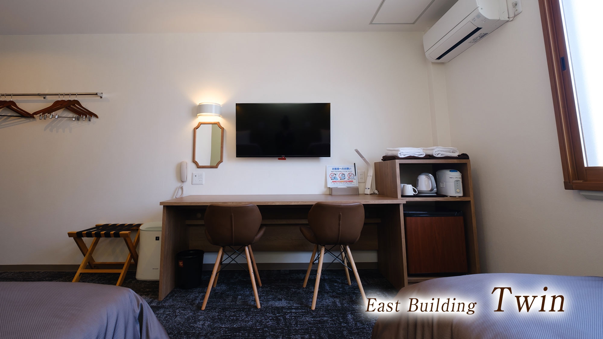 【除菌清掃・空気清浄機完備】東館4階シャワーブス付ツイン★シングルベッド2台※3名の場合1台はエキストラベッド対応★添寝不可★※バスタブ無しタイプ