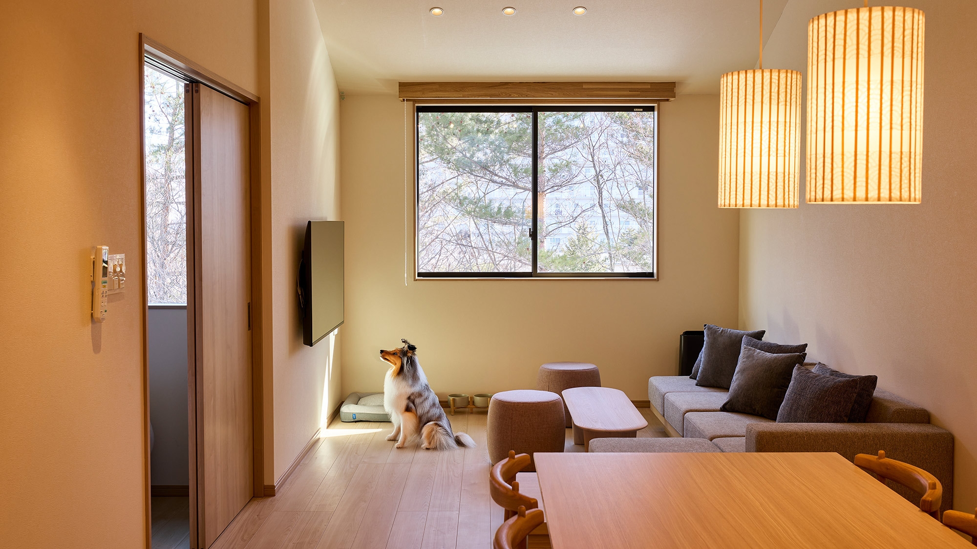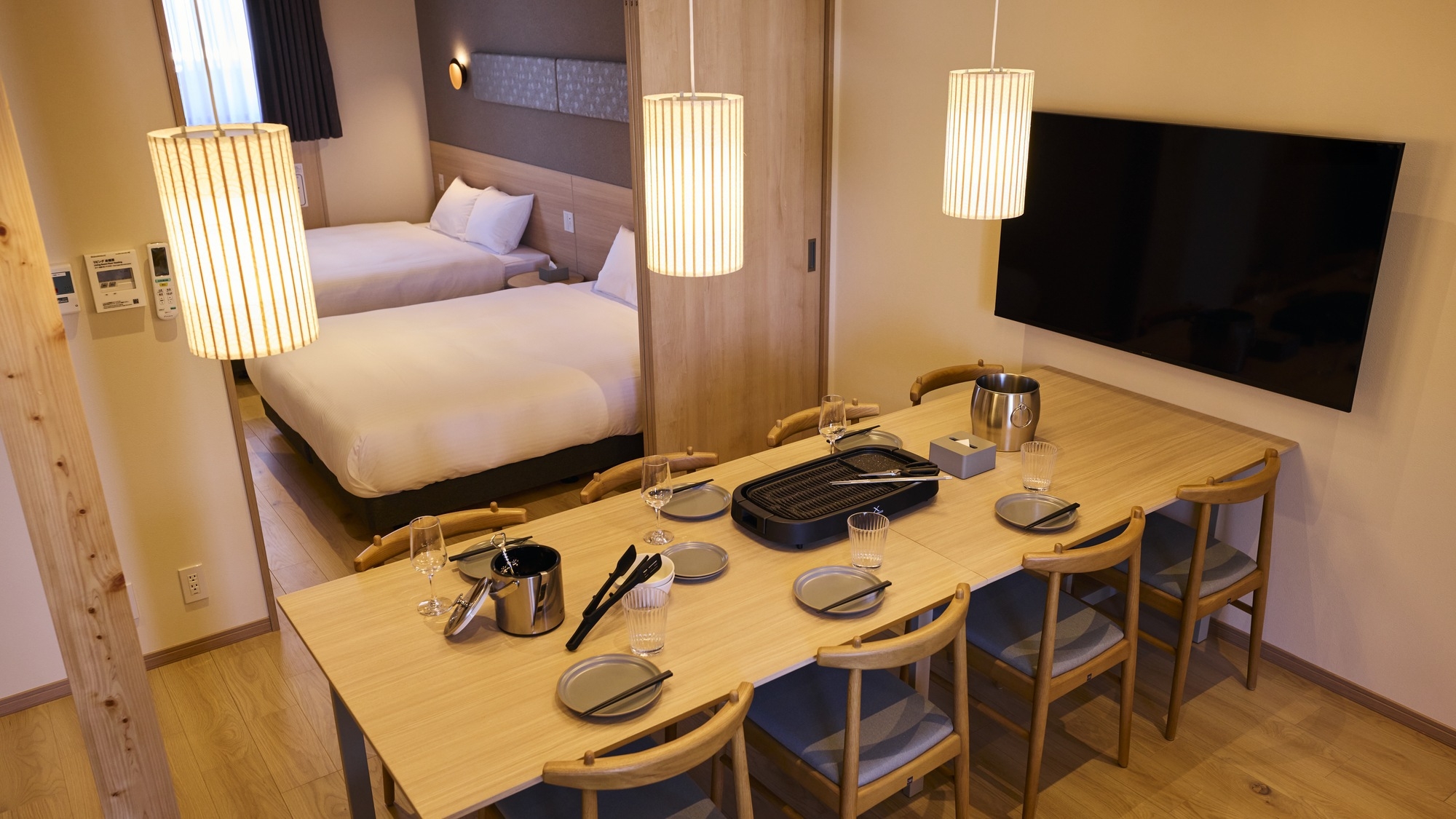 【禁煙/専用温泉&サウナ付】ペット同泊不可/クイーンベッド2台+シングルベッド2台/プロジェクター/洗濯機/ウェルカムドリンク