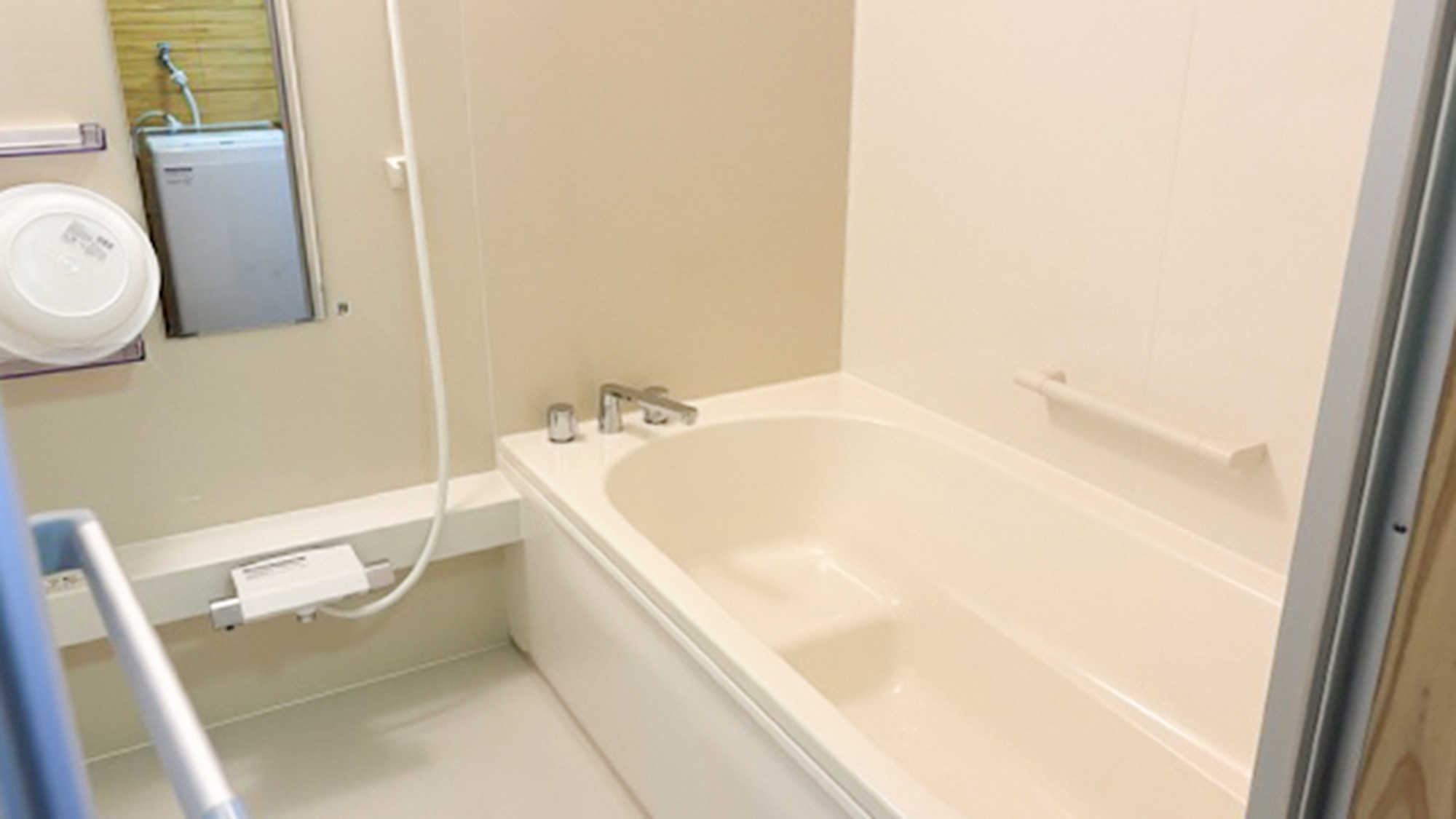 和洋室とバス・トイレ・キッチンを備えたお部屋。エアコン、冷蔵庫、洗濯機、無料Wi-Fi完備。連泊の際も安心してお泊りいただけます