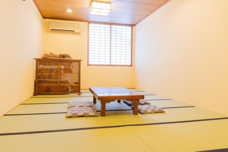 和室タイプのお部屋になります。 テーブル、テレビの備え付けがございます。 お風呂は大浴場をご利用ください。 トイレは各階にあり共有となります。
