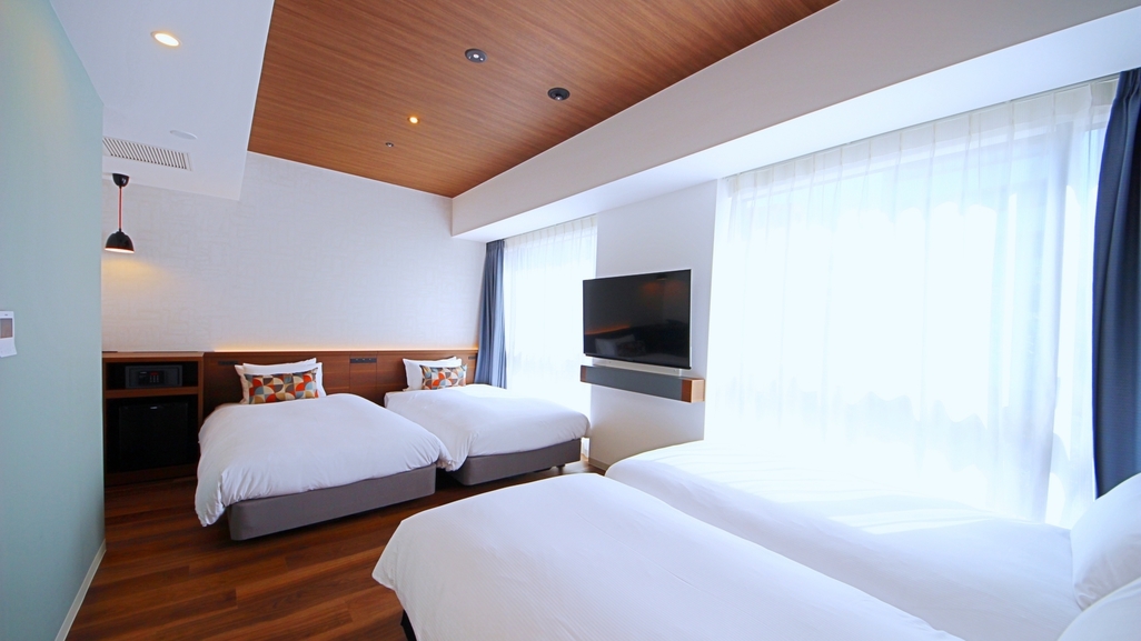 ■広さ:24.1平米 ■定員:3名(大人人数) ■ベッド:幅110cmのベッド2台+幅95cmのエキストラベッド1台 ■フロア:スカイフロア(14〜16階)