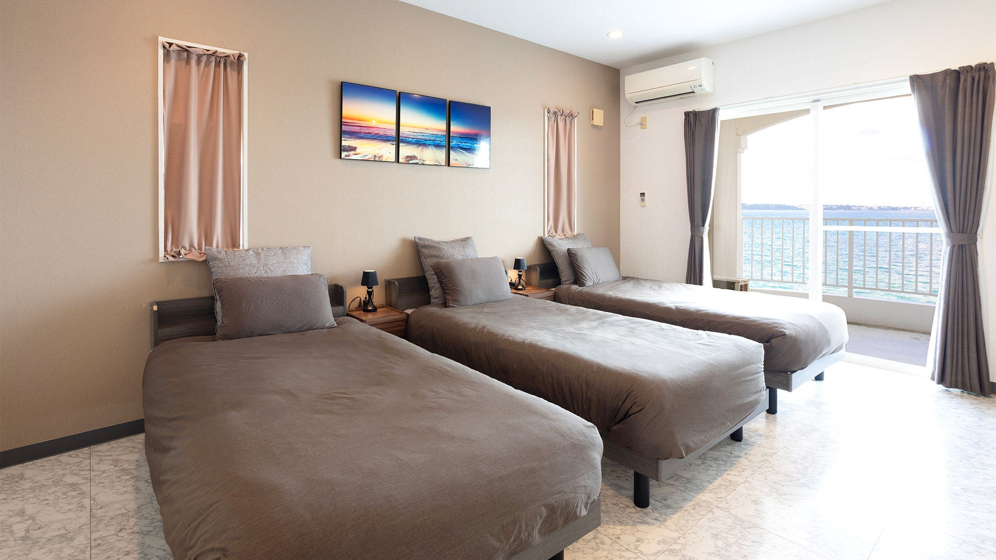 ・寝室1:シングルベッド3台+布団1組