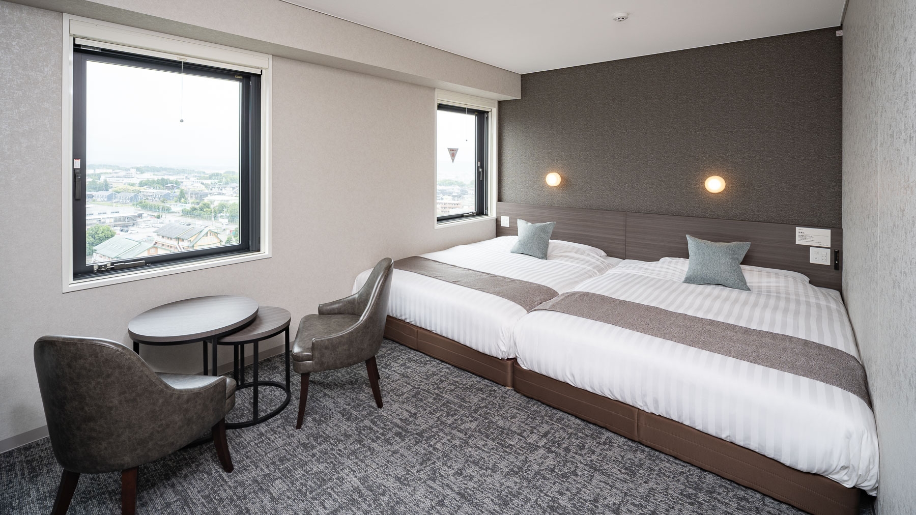 セミダブルサイズのベッドが2台ある【ハリウッドツインルーム】です。120cm幅のベッドが2台あるお部屋で、ご家族やお友達同士にお勧めです♪