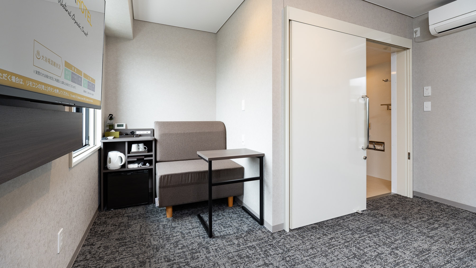 150cm幅のワイドベッド+広々デスクの【エクストラルーム】です。広々デスクで仕事や作業がしやすいお部屋です。