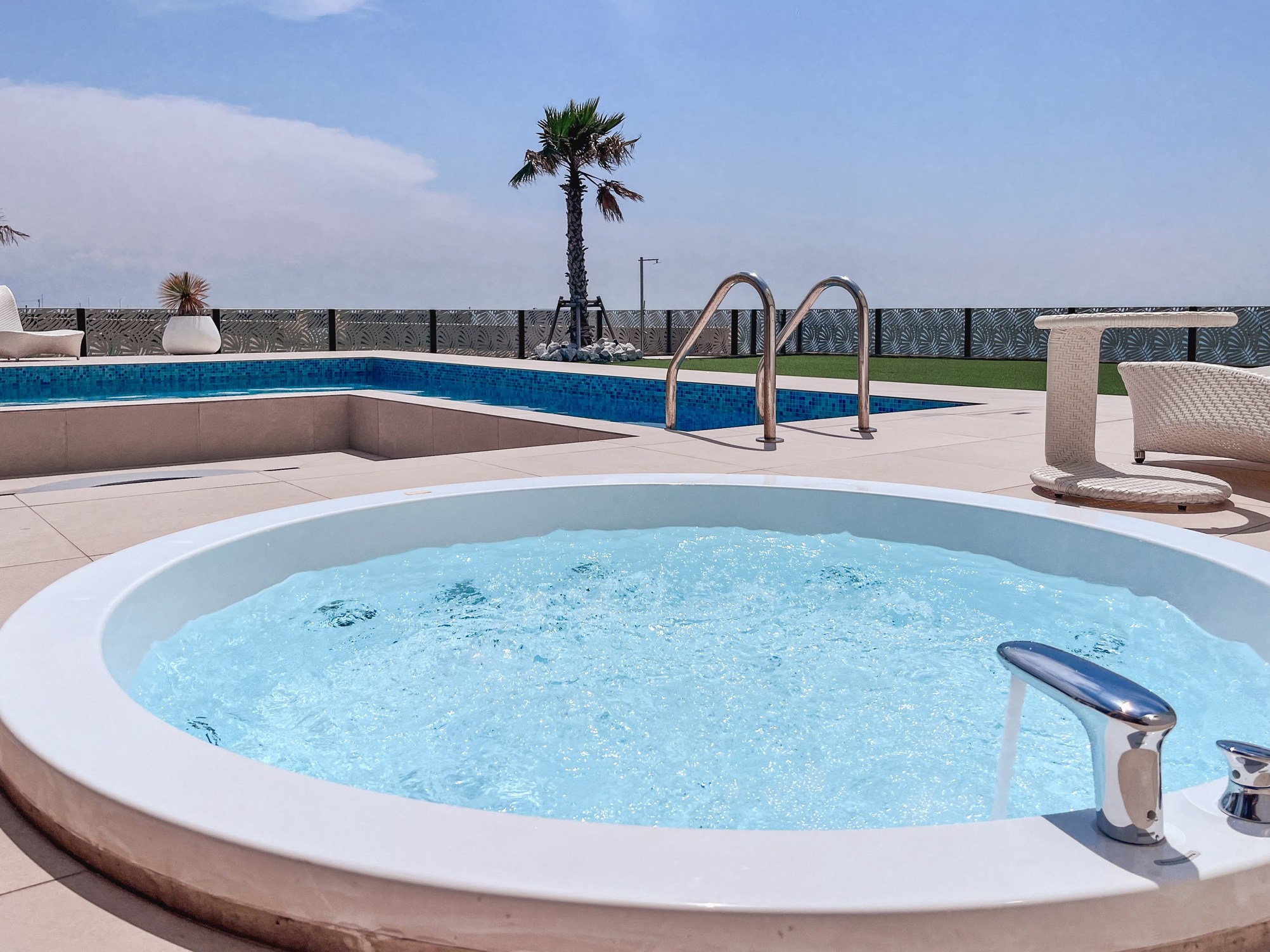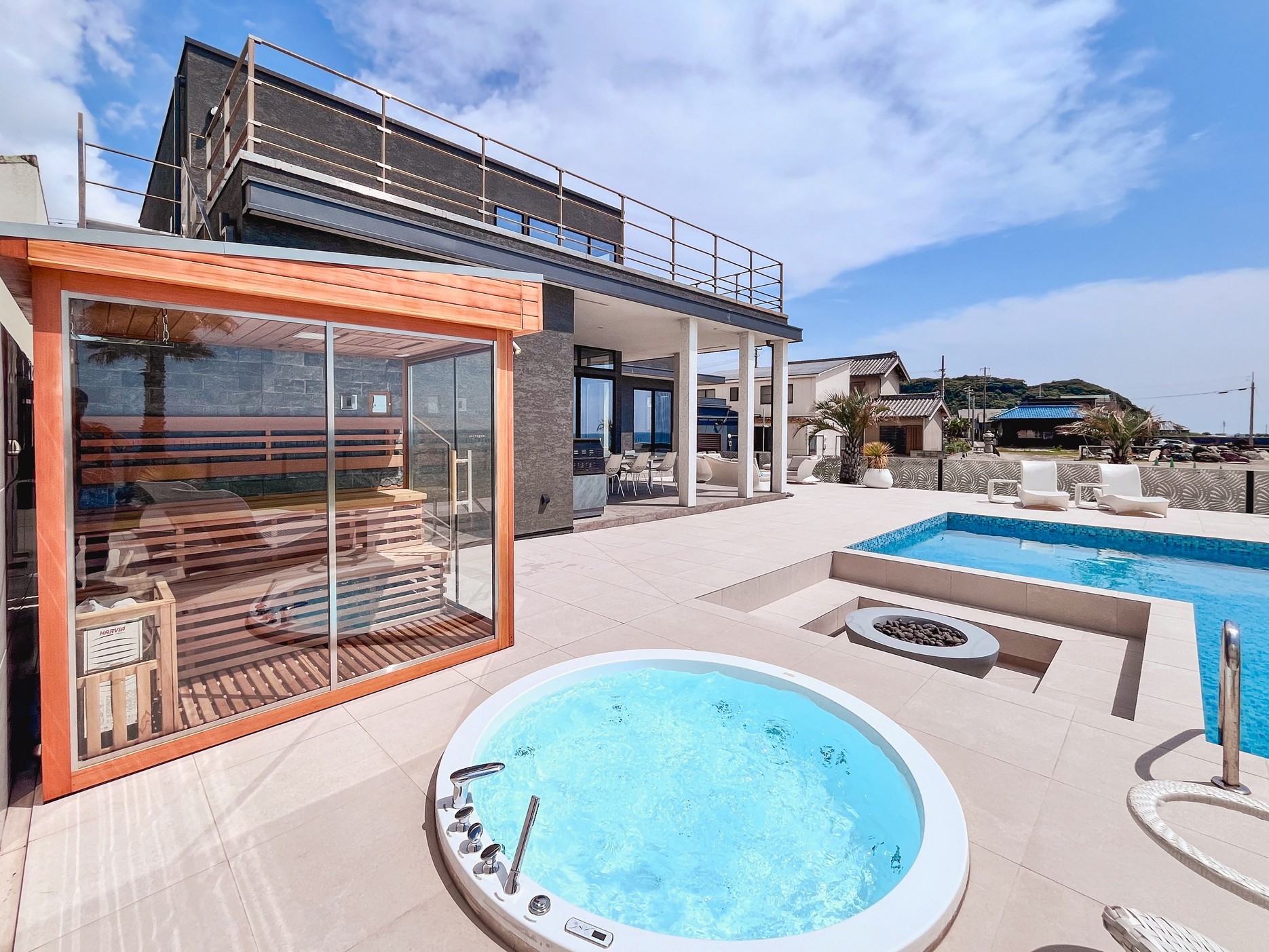 NEW Opening!知多半島の一棟貸切プライベートリゾートヴィラ一日一組限定 一棟貸切洗練された癒しの空間、あなただけの別邸が誕生 テラスにプライベートプール・サウナ・ジャグジー設備!※屋外プール、屋外サウナは水着着用が必要です(水着をご持参ください)絶好のロケーション日々の喧騒を忘れゆっくりとくつろげるプライベートヴィラご家族や大切な人との極上の休日をお約束します【施設情報】宿泊定員:10名様まで(10名でのご宿泊を希望の場合、施設へ直接ご連絡ください)チェックイン :15:00〜19:00チェックアウト:11:00駐車場 :4台(無料)■設備サウナ/ジャグジー/プール/BBQコンロ/床暖房/ジェットバス付浴槽/FREE Wi-Fi/洗面台/トイレ/ランドリールーム/アウトドアシャワー/食器/カトラリーセット/ソファー/ダイニングテーブル/ダイニングチェアー/テレビ/家電(炊飯器/オーブンレンジ/ポット/オーブントースター/冷蔵庫/ドライヤー/ヘアアイロン/ホットプレート)/洗面化粧台/温水洗浄便座/空気清浄機/エアコン/食洗機/スチームアイロン/マッサージチェア/ミネラルウォーター(ペットボトル)■アメニティバスタオル/フェイスタオル/ハンドタオル/バスローブ/ボディタオル/スリッパ/シャンプー/コンデショナー/ボディ ソープ/固形石鹸/ドライヤー/オーガニックスキンケア(クレンジング/ローション/クリーム)/バニティキット(コットン/綿棒/ヘアゴム)/歯ブラシ/マウスウォッシュ/コーム/シェービング【アクセス】最寄りIC:南知多道路 美浜ICから車で約15分駐車場4台(無料・予約不要)【注意事項】チェックイン時間は正確なお時間をご登録ください予約時から変更がある場合はあらかじめご連絡ください全館禁煙です/喫煙は所定の喫煙所のみご利用いただけます