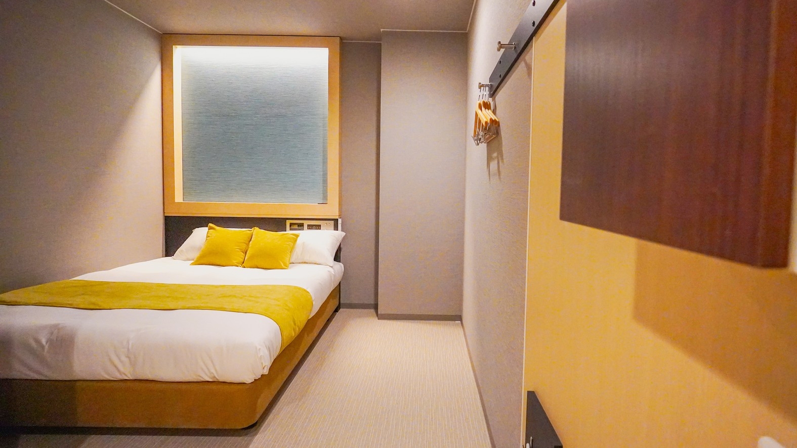 120cmのベッドを2台備えたお二人様向けの快適な空間です。ビジネスパートナーや友人との旅行にも最適な設計で、個々のプライバシーを保ちながらも、共に過ごせます。