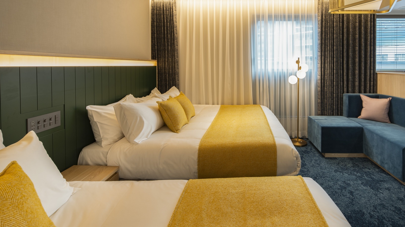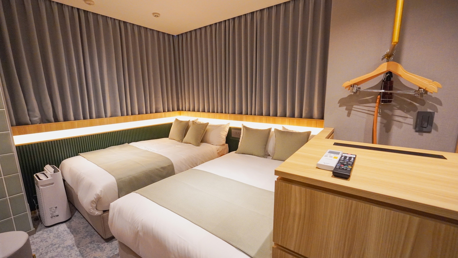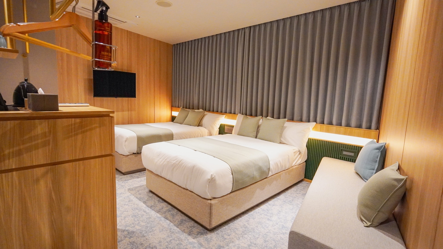 120cmのベッドを2台とソファベンチを備えたお二人様向けの快適な空間です。ビジネスパートナーや友人との旅行にも最適です。