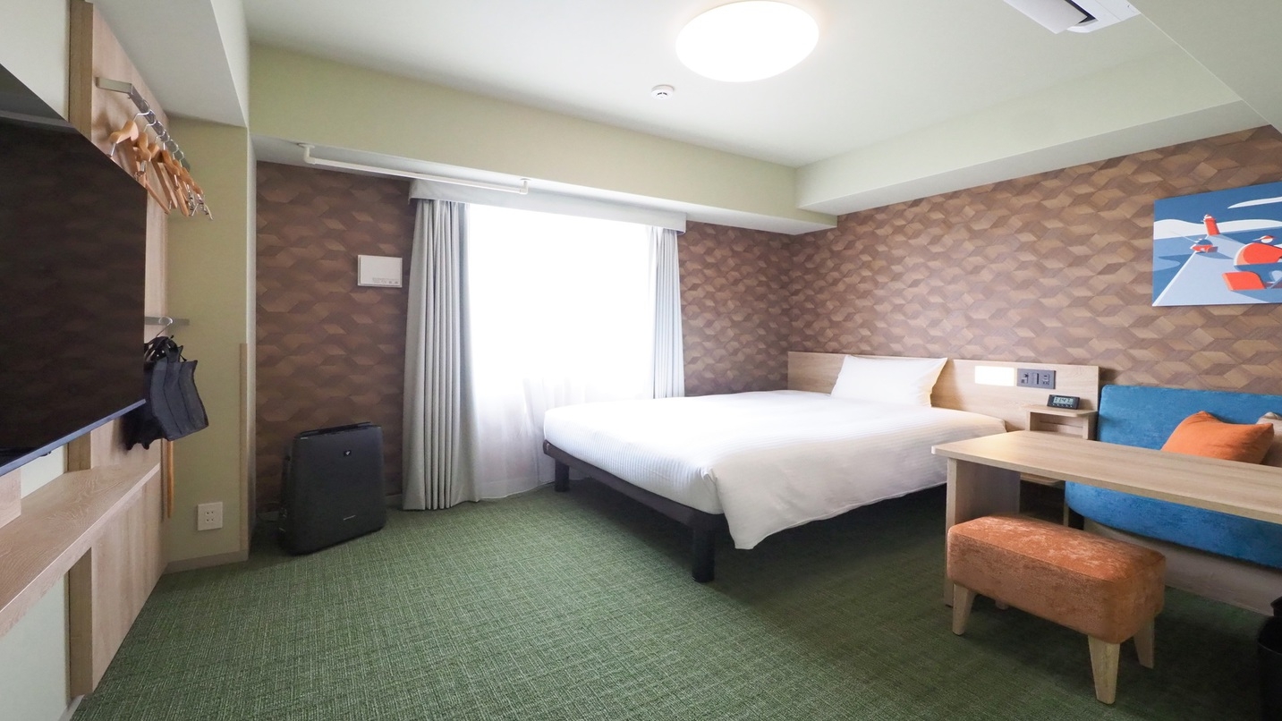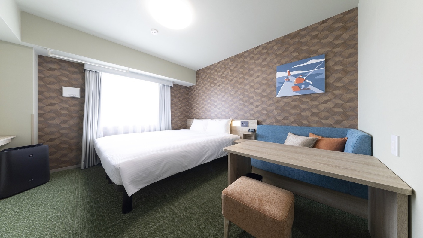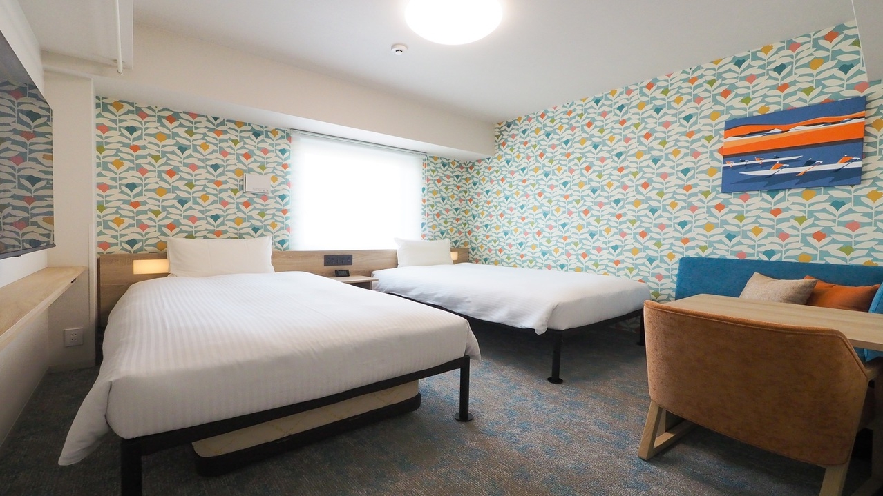畳調の床材を使用したお部屋は靴を脱いでお過ごしいただけます。ツインベッドに加え、ソファーベッドとスタッキングベッドを備え、最大4名様までご利用可能です