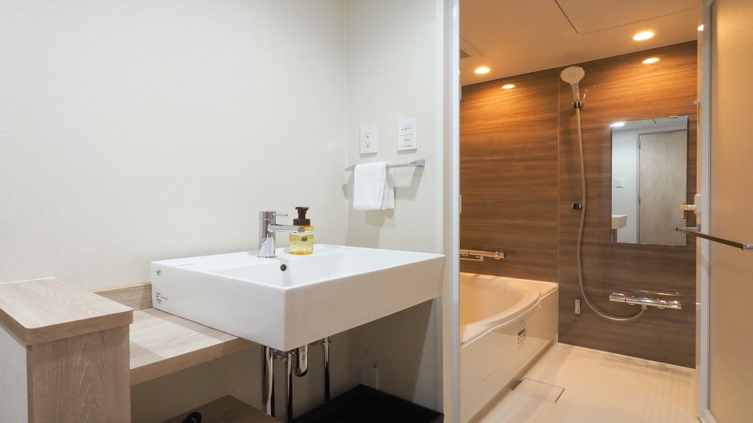幅広いニーズに対応した設計が魅力のお部屋です。バスタブをはじめ、トイレ周りやベッド周りが広めに作られており、どなたにも快適にお過ごしいただけます