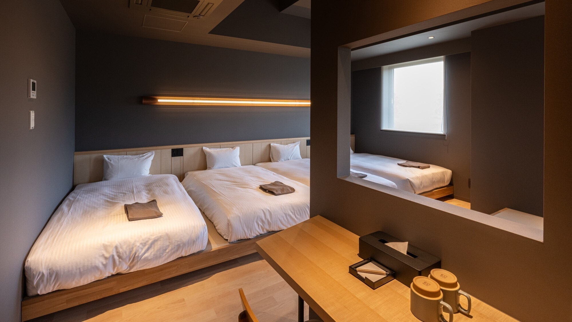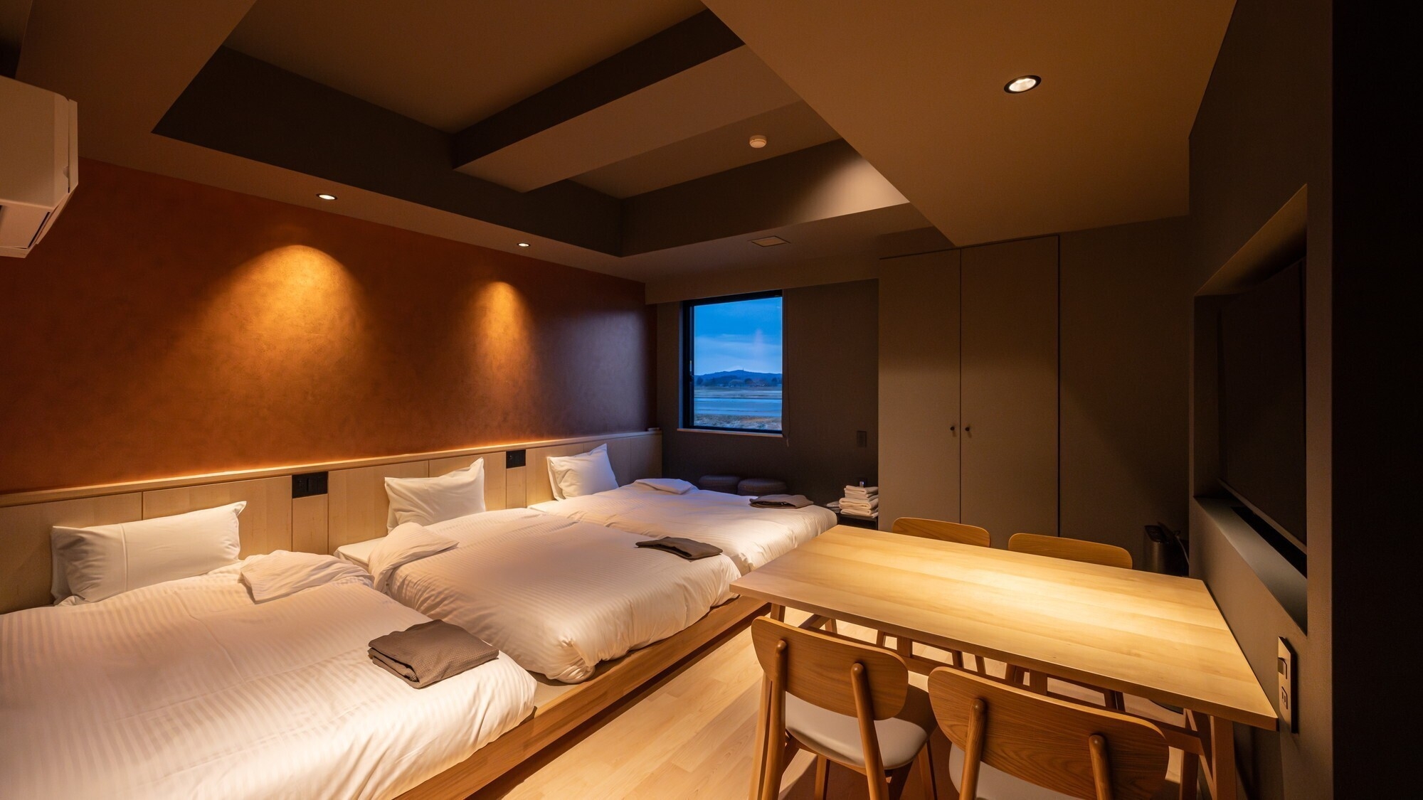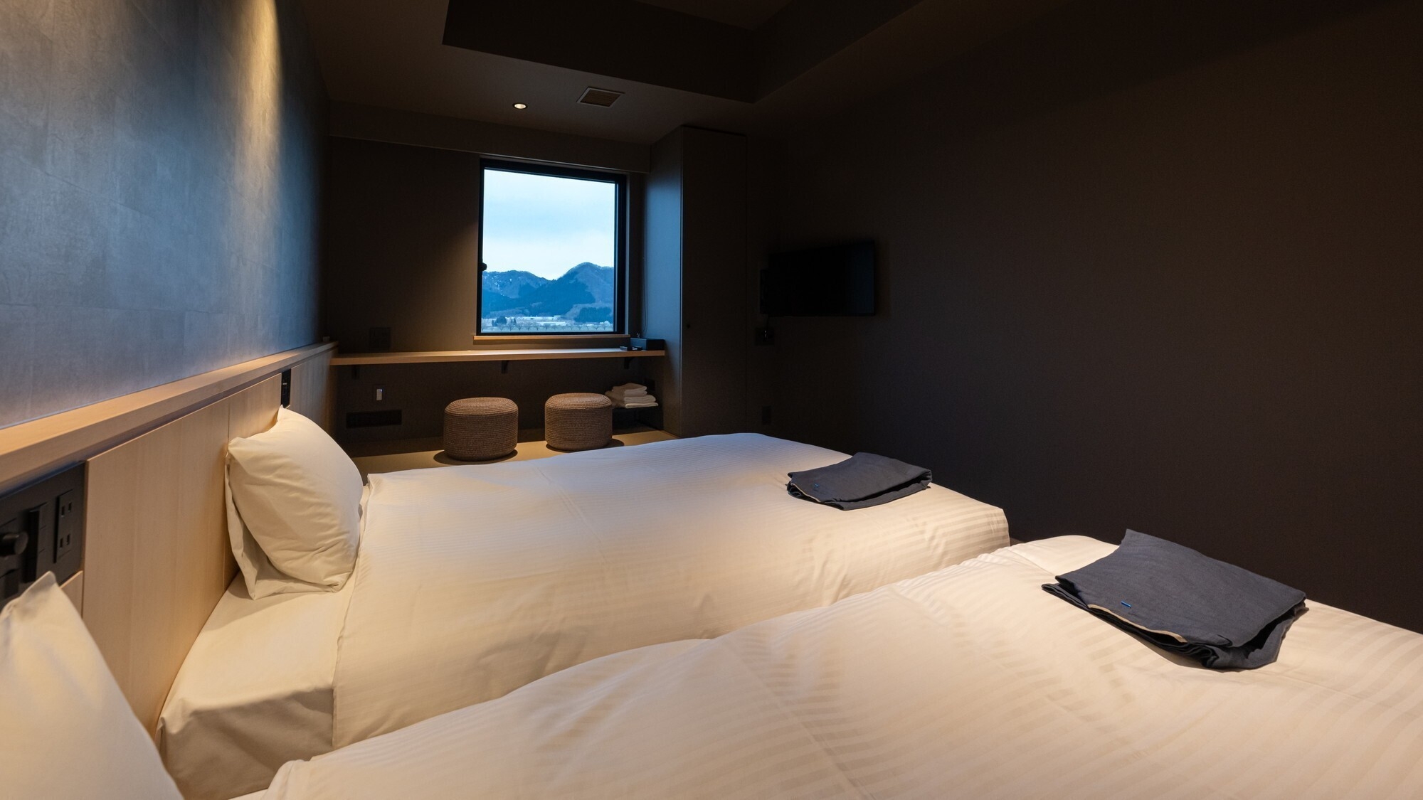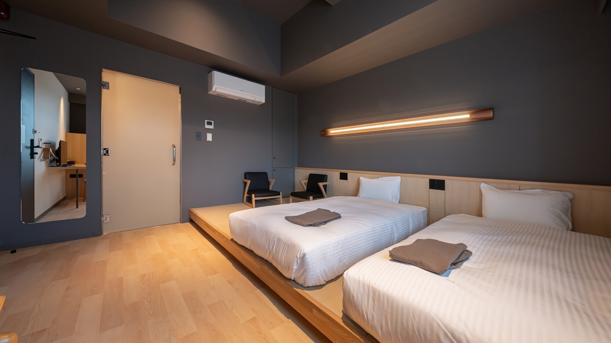 最大4名様でのご宿泊可能な広々としたセパレートバス・トイレ付のツインルームです。※添い寝はベッド1台につき1名まで可。※当館の空調は全館一括管理となっております