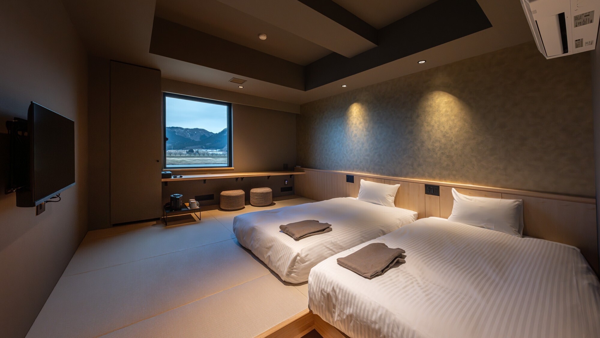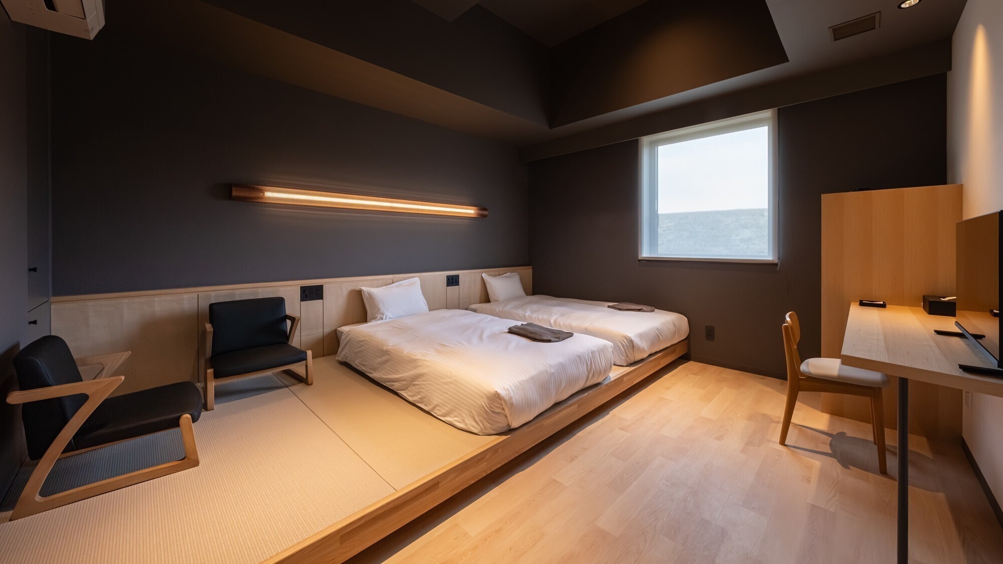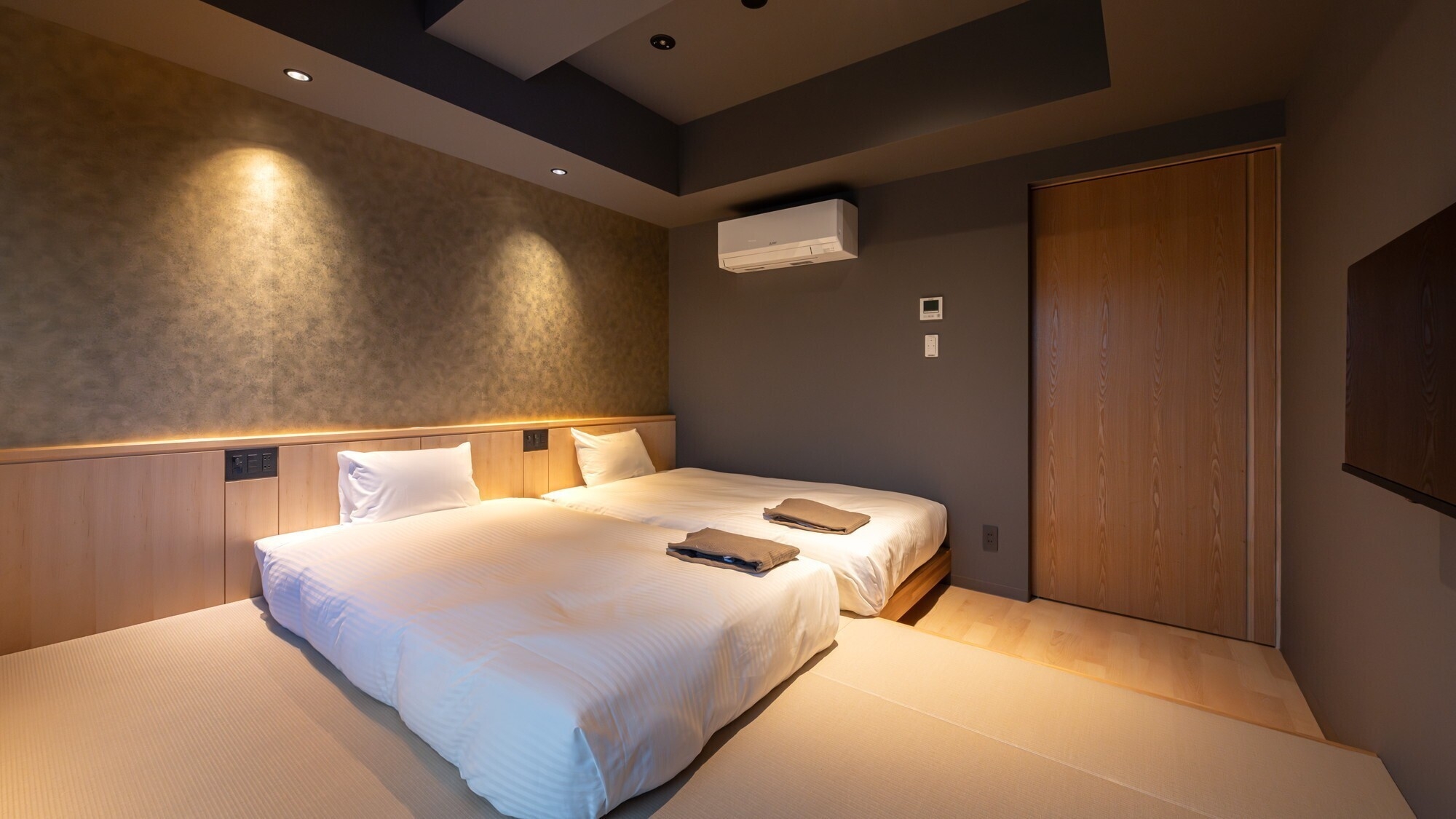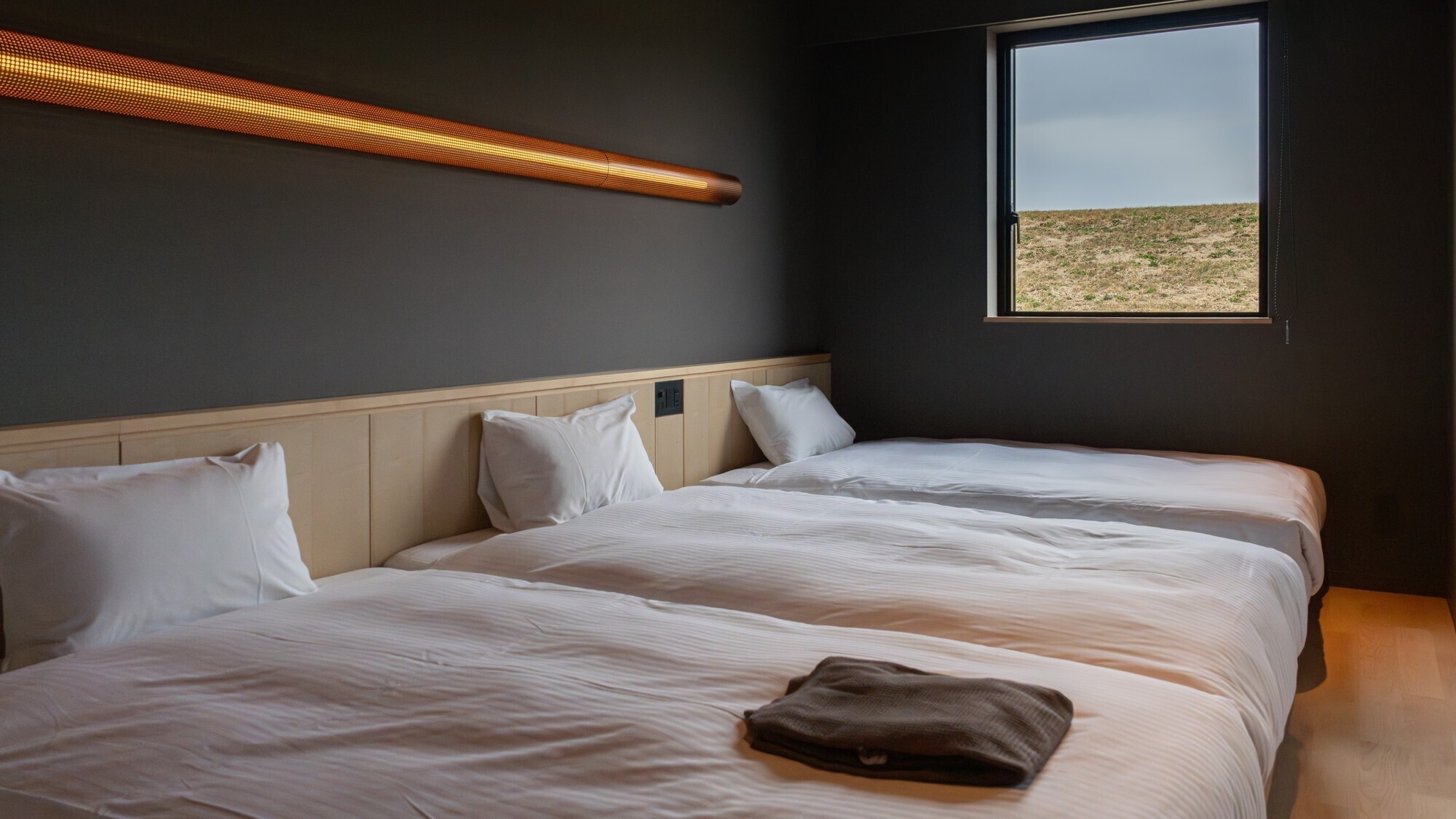 最大4名様でのご宿泊可能な広々としたセパレートバス・トイレ付のツインルームです。※添い寝はベッド1台につき1名まで可。※当館の空調は全館一括管理となっております