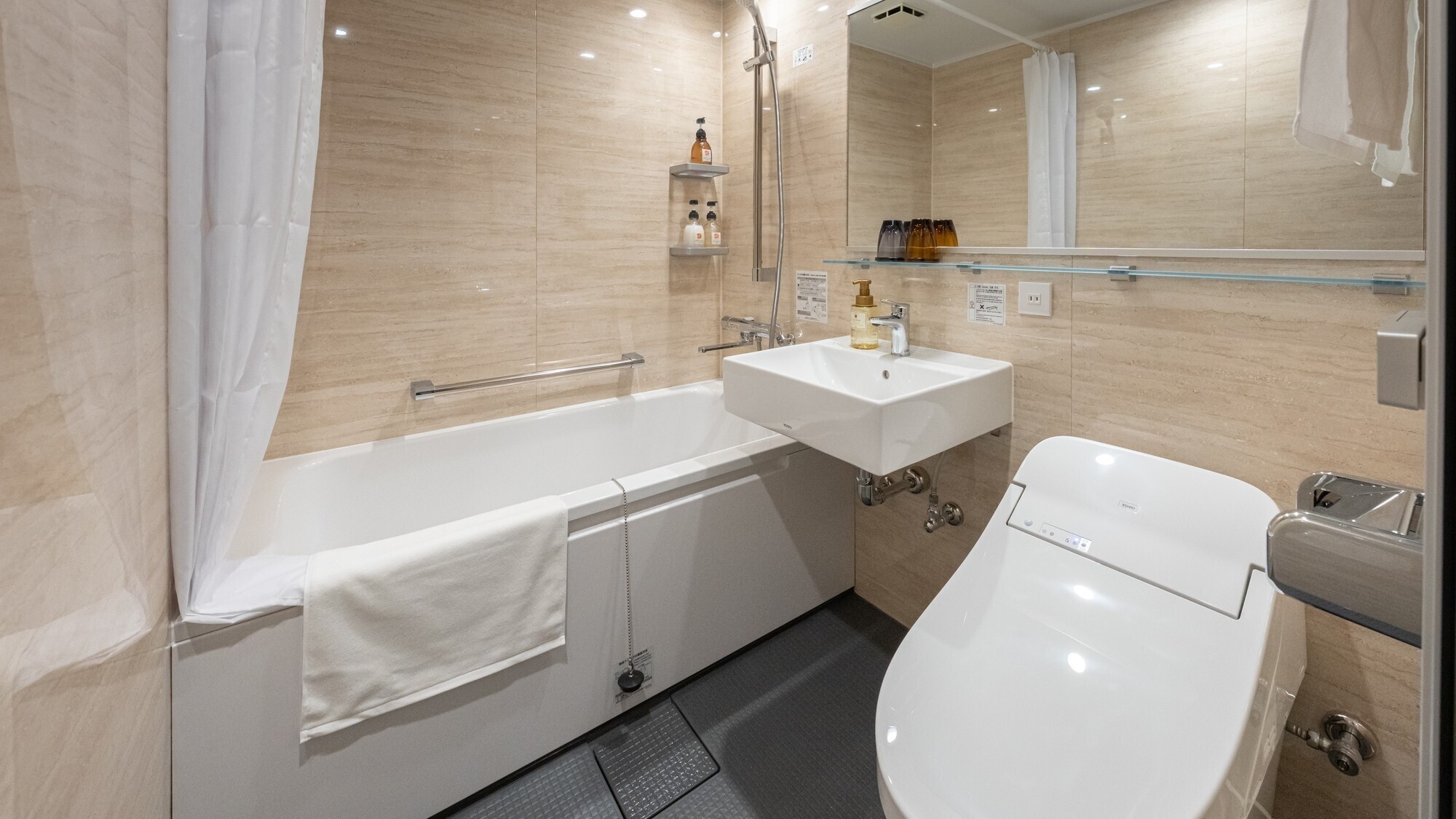 ゆっくりおくつろぎいただけるバス・トイレ・洗面所付のツインルームです。 ※添い寝はベッド1台につき1名まで可。※当館の空調は全館一括管理となっております
