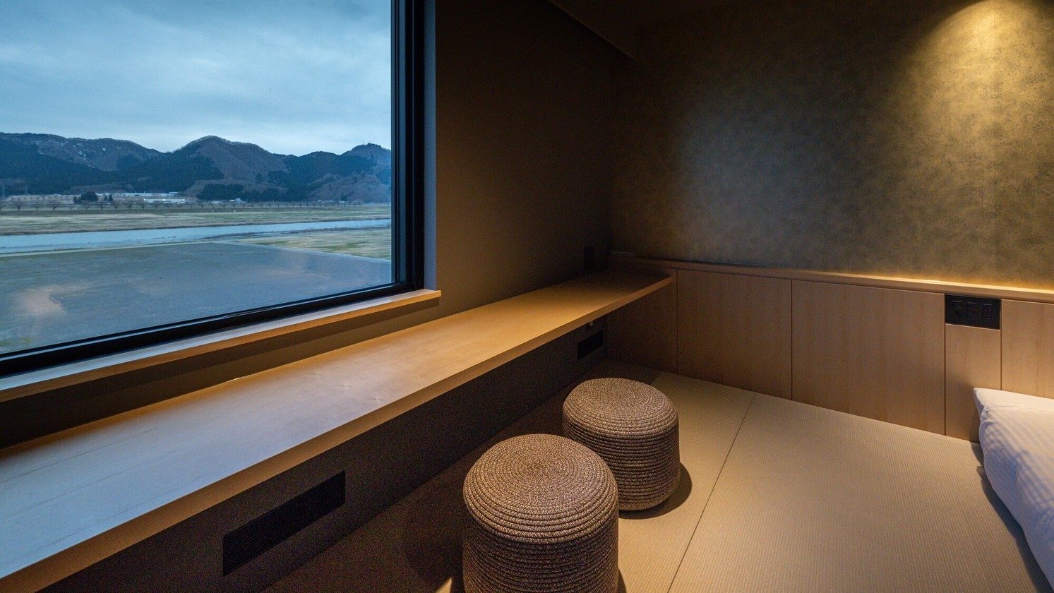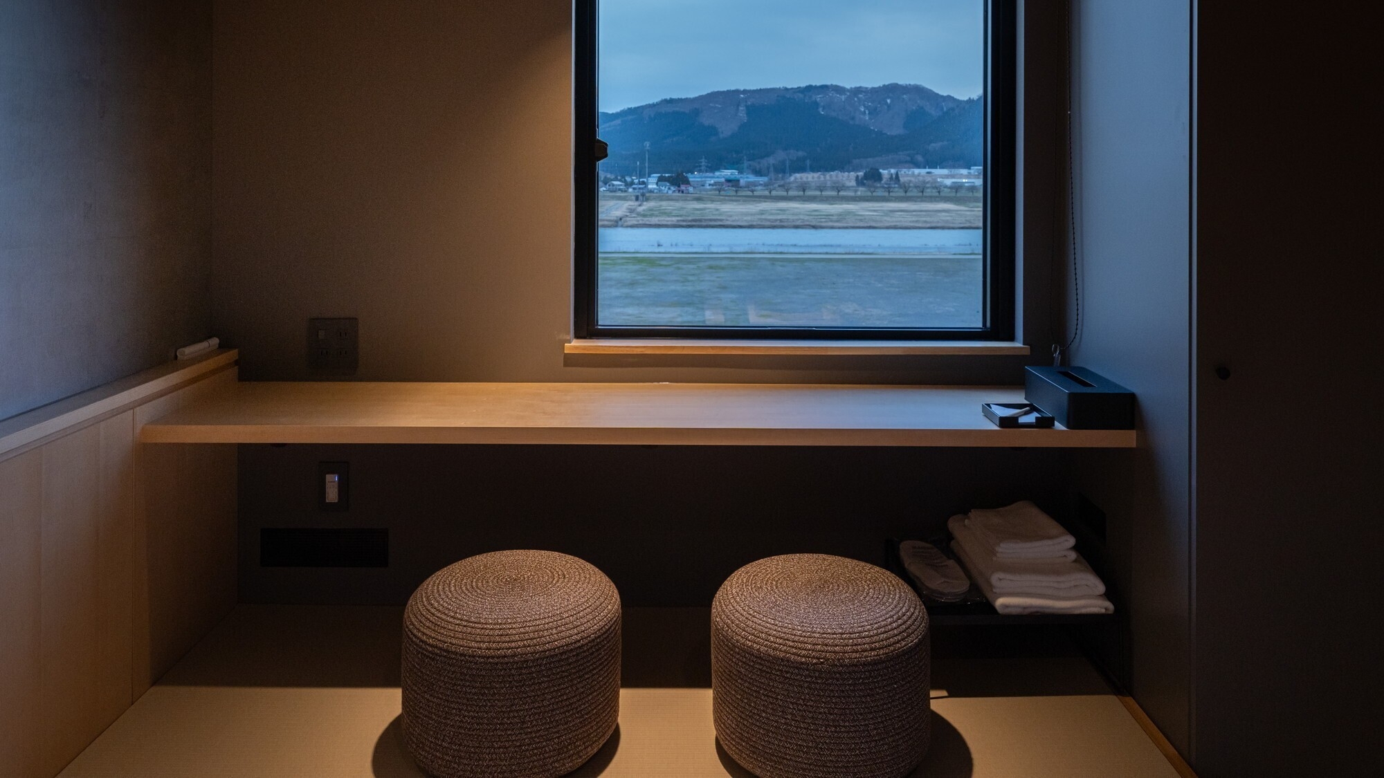 低層階の為河川敷が望みにくい客室となっております。最大3名様がご宿泊可能なセパレートバス・トイレ付のツインルームです。※当館の空調は全館一括管理となっております
