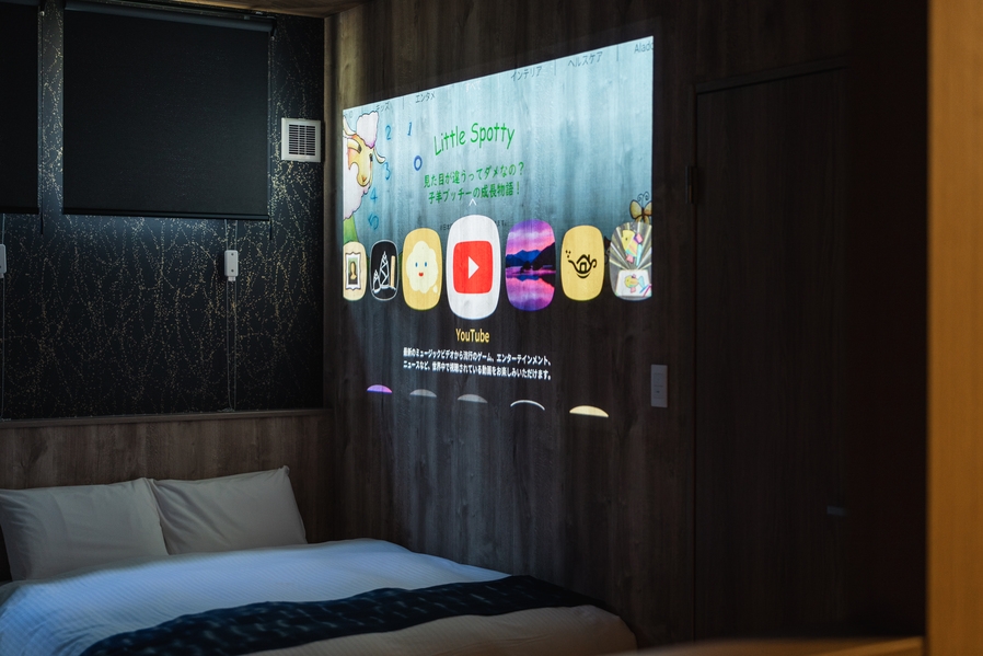 1LDK。半露天風呂。75インチTV。プロジェクター「 popIn Aladdin(ポップイン アラジン)」あり!キッチンにはバルミューダ☆