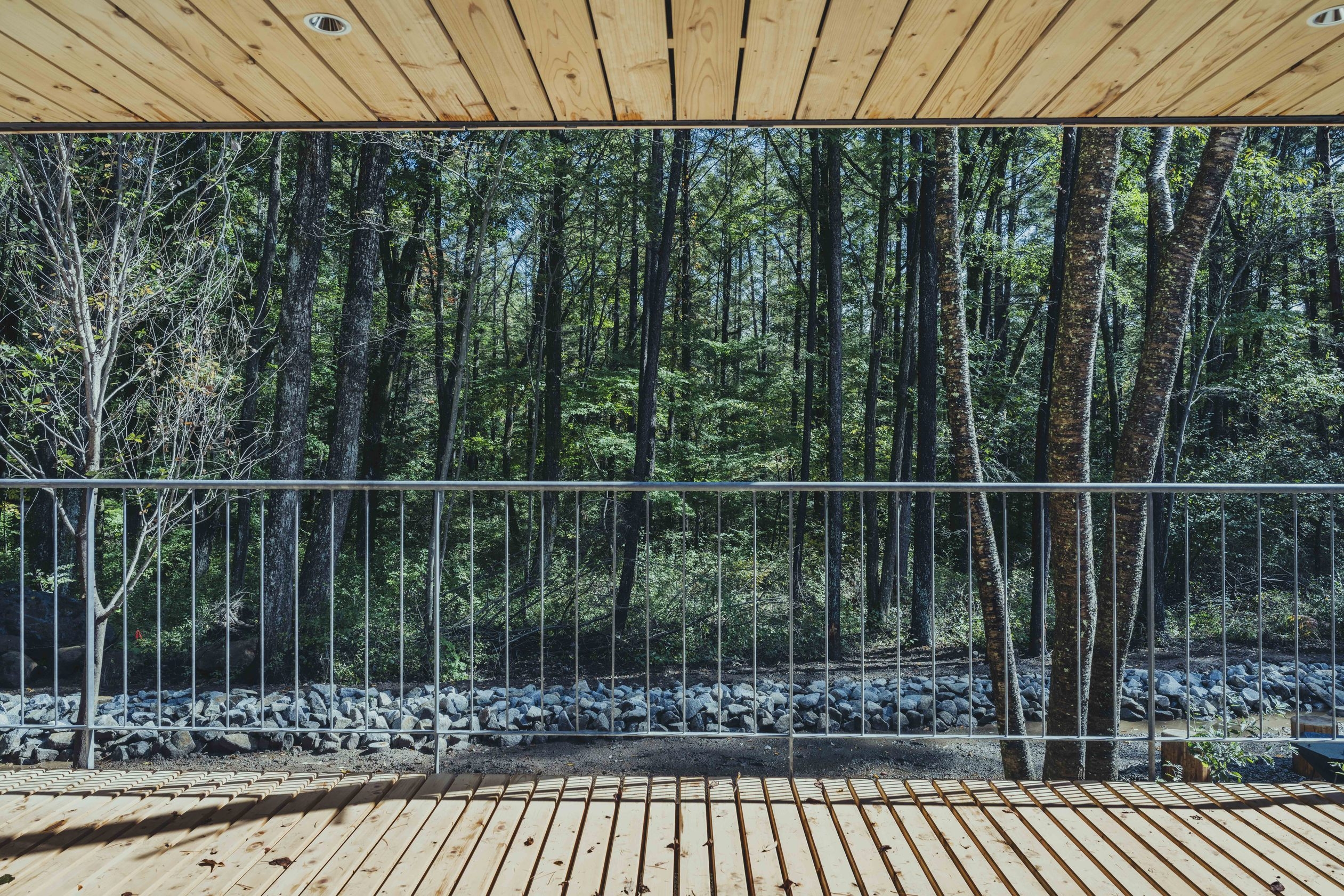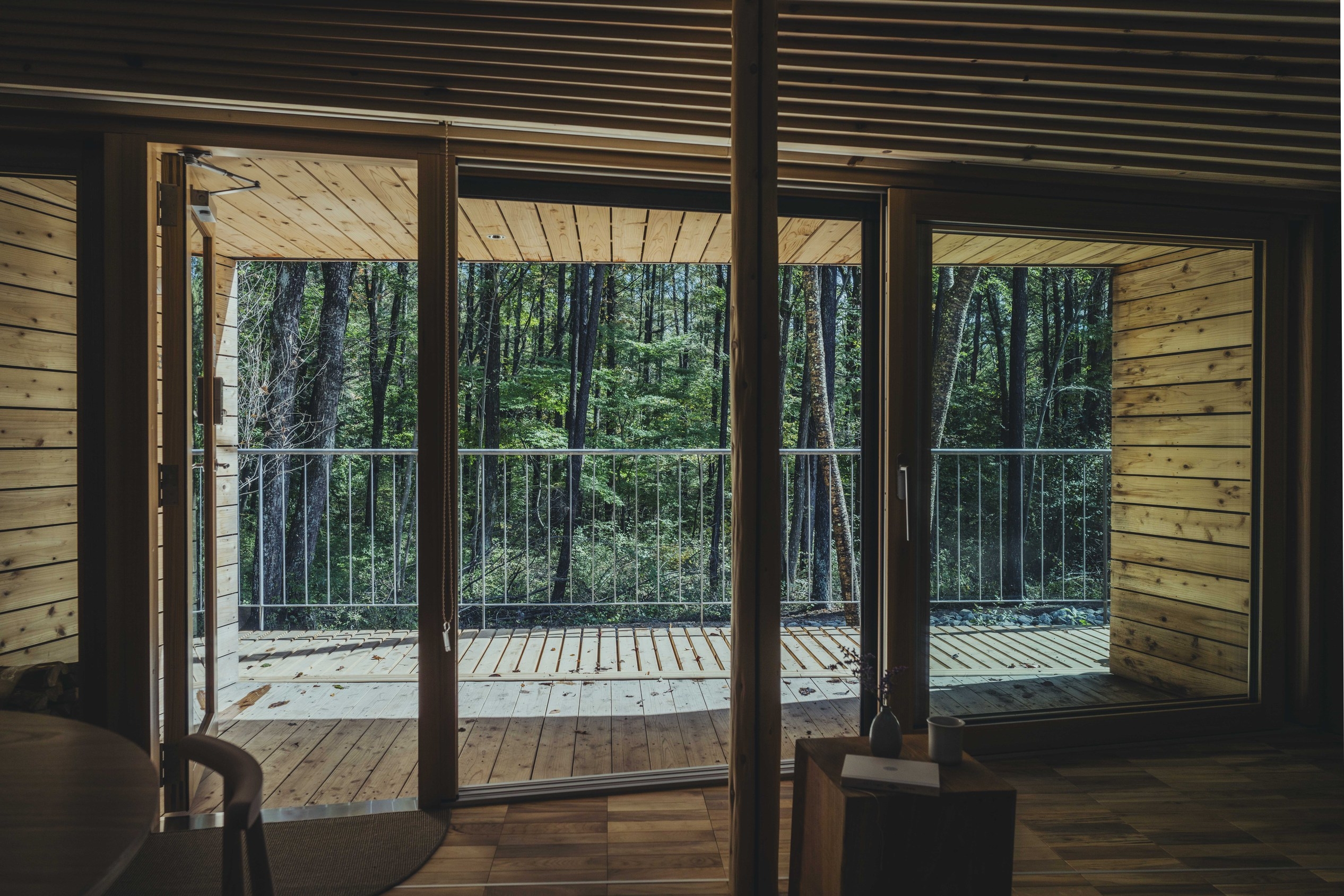 リビングとバルコニーが一体となることで、暮らしと自然がシームレスに繋がる独立タイプの建築。(セミダブルベッド2台+追加寝具1組)