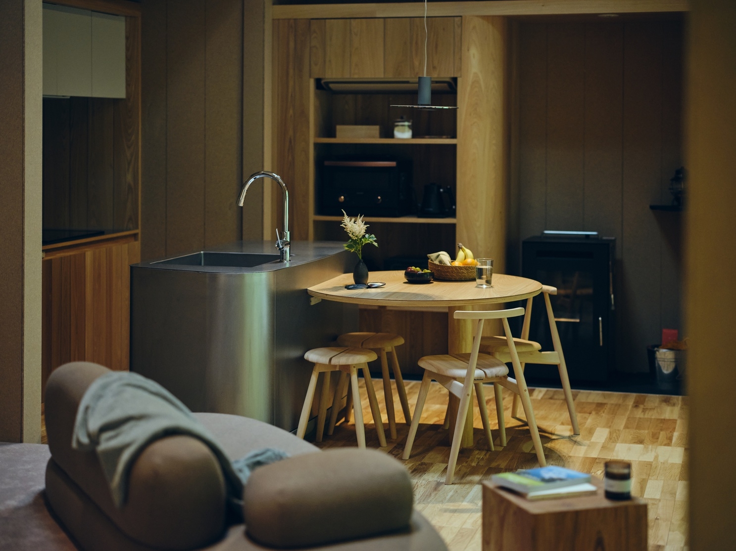 苔むす森に生きる動植物への思いやりを表現した、地球を愛するキャビンに滞在するシンプルプラン。SANU 2nd Homeは、忙しい都市生活から少し距離をおいて、五感で自然を感じ、自らの手で生活を営むためのセカンドホームです。■設備■キッチン・ダイニング:三口IHクッキングヒーター、冷蔵庫、炊飯器、電子レンジ、オーブントースター、オーブンレンジ、ワインセラー、電気ケトル、調理用品、食器・カトラリー調味料:砂糖、酢、醤油、海塩、みりん、酒、胡麻油、オリーブオイル、サラダ油、胡椒、岩塩リビング:ソファ、ペレットストーブ(無料)、Bluetoothスピーカー、プロジェクターセット、焚き火台(薪は有料・持ち込み可)、洗面:アメニティ(シャンプー、コンディショナー、ボディソープ、ハンドソープ)、ドライヤー、タオル共用部:洗濯乾燥機(無料)■有料備品■バスマティライス×2ノンベジタリアンカレー×2ベジタリアンカレー×2コーヒー豆(2杯分)×4ナチュラルワイン3種焚き付け薪×3薪×3恐れ入りますが、歯ブラシやルームウェア(パジャマ)、アメニティ(化粧水、乳液、クレンジング等)はご持参いただきますようお願いいたします。■お食事■夕食・朝食のご用意はございません。ぜひ地域の新鮮な食材を買って、キッチンで料理をお楽しみください。■チェックイン/チェックアウト■SANU 2nd Homeのアカウント登録後、SANU 2nd HomeのWebアプリ上でチェックイン・ドアの解錠ができるようになります。必ず事前のご登録をお願いいたします。■定員■定員数は4名ですが、ご用意している寝具はセミダブルベット2台と追加寝具1セットです。大人2名、または大人2名+小学生以下の子供2名までを推奨しています。