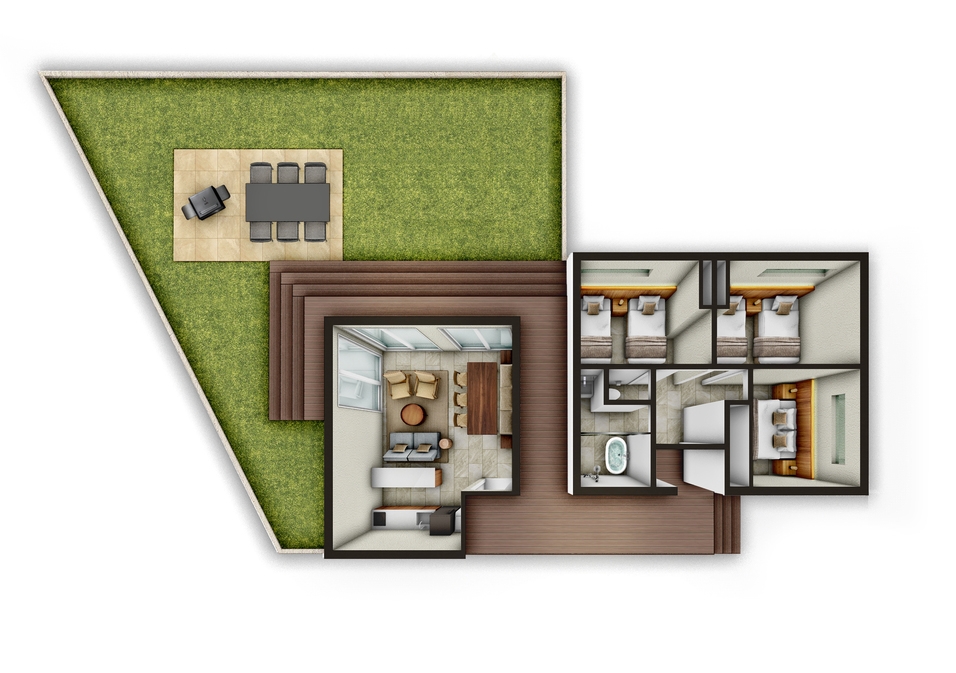 すべての棟にはプライベートガーデンを備え、ご家族やグループでゆったりと過ごせる広々とした空間が魅力です。