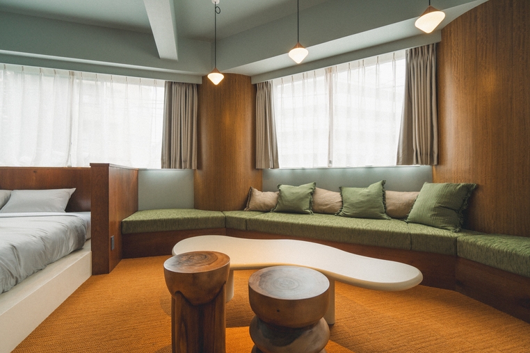 当施設はデザイン性と快適さを両立した、全13室のブティックホテルです。家具や照明にこだわったミッドセンチュリーモダンなインテリア空間。