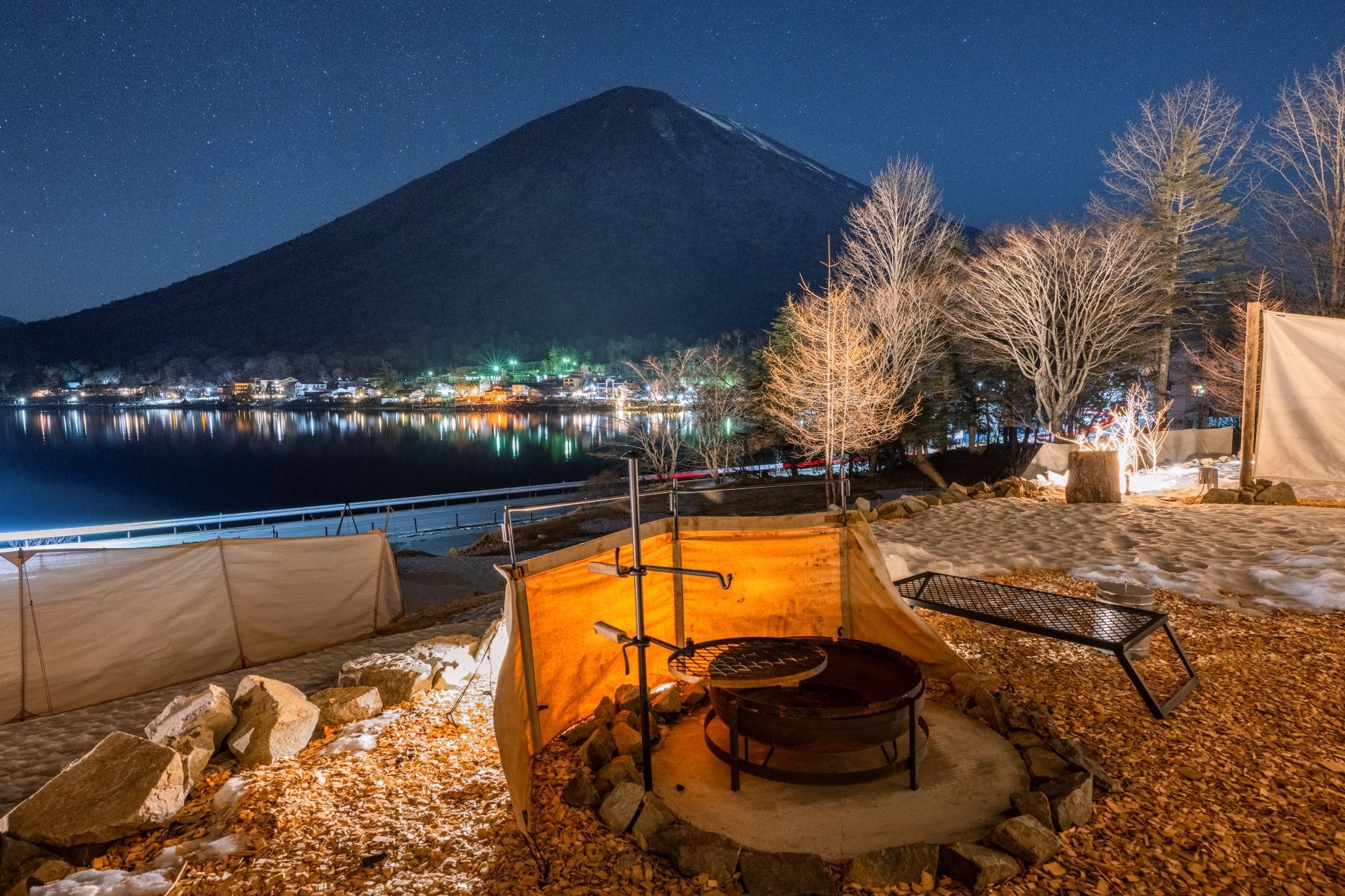 ※冬季期間(11月15日〜4月15日)はBBQ台と焚火エリアのタープを設置していません。