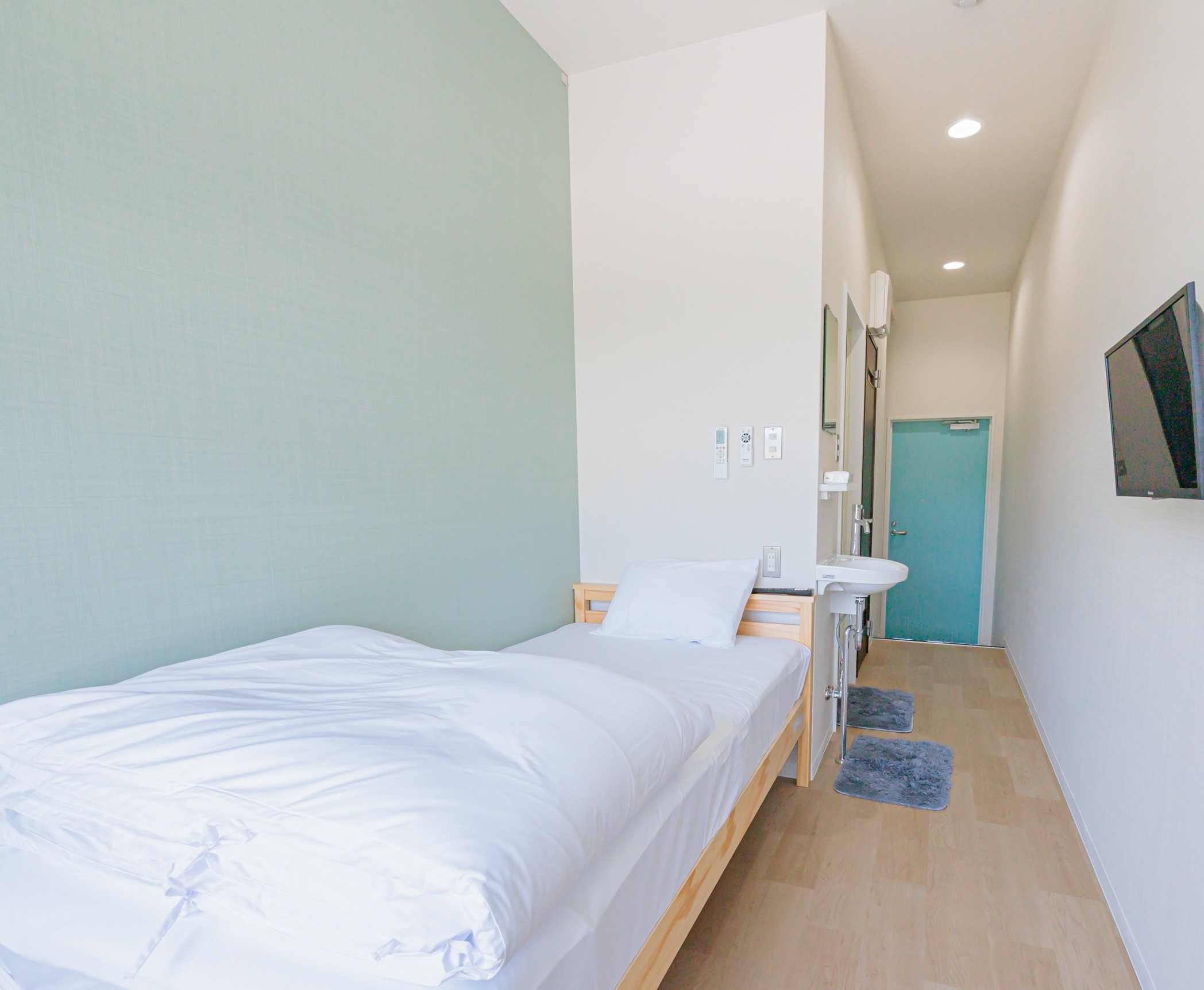 1泊〜長期滞在可能、ネット動画搭載テレビ、無料Wi-Fi、洗濯乾燥機(無料)、シャワートイレ、完全個室、収納有